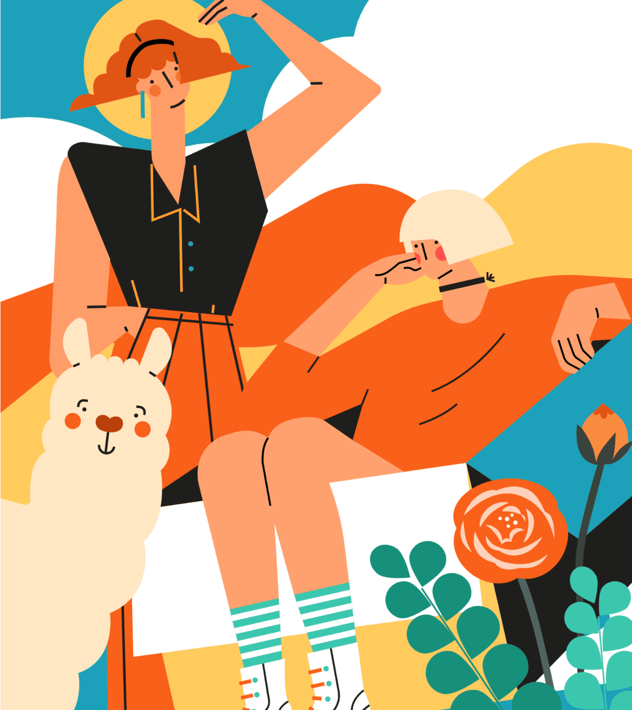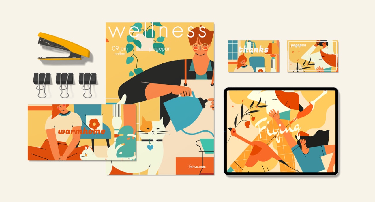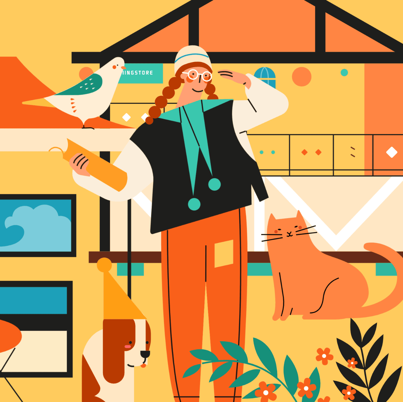 使用元素:人物、建筑、家居、植物、陈设、动物、背景图形