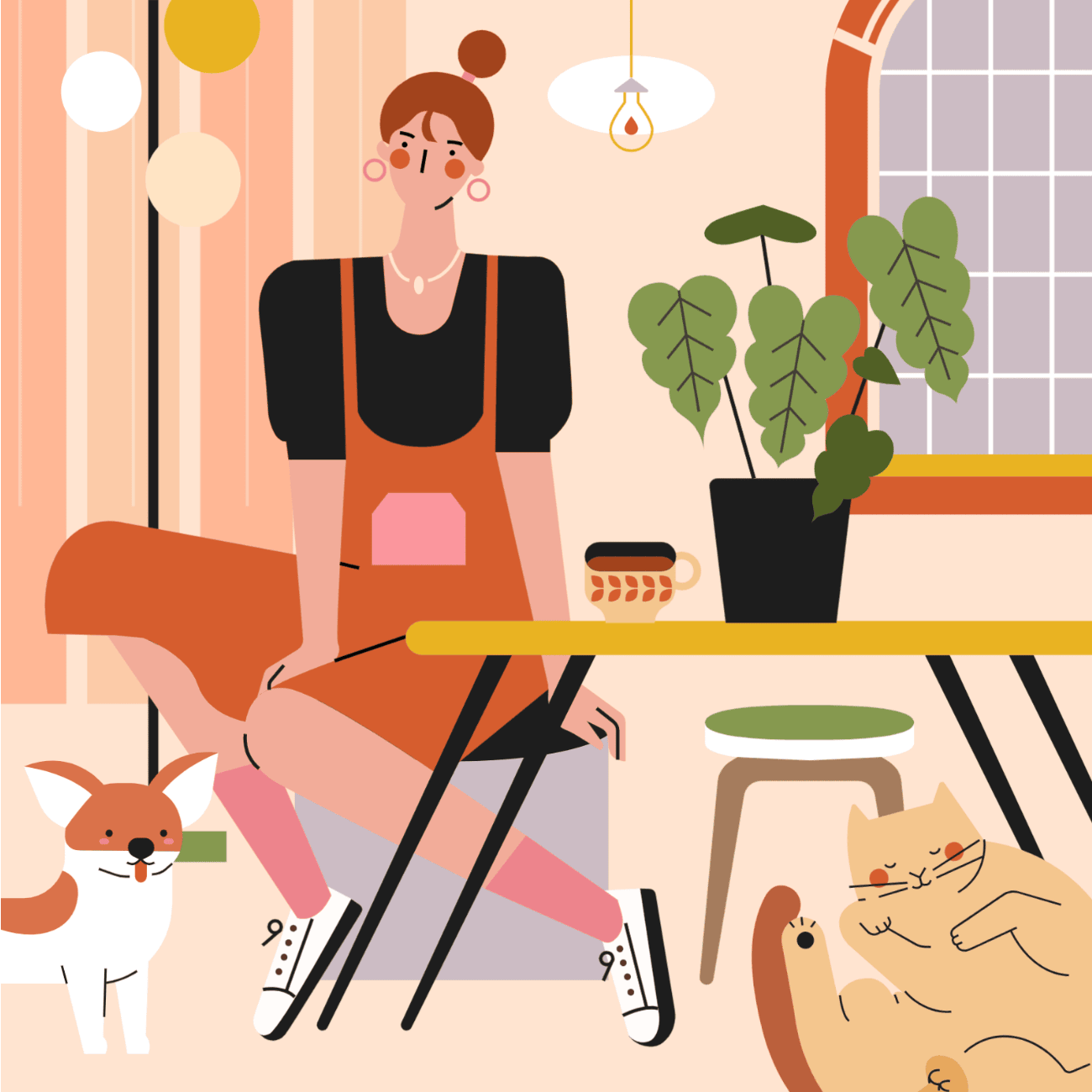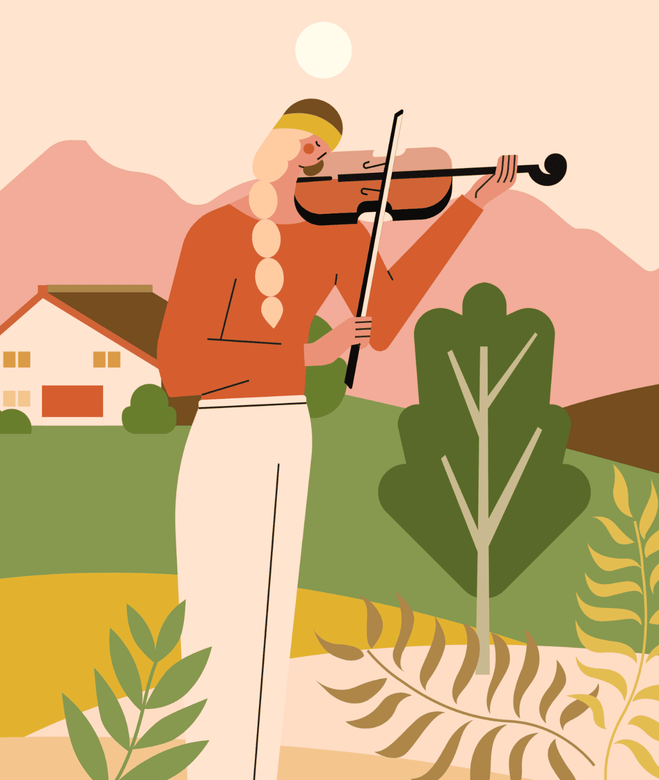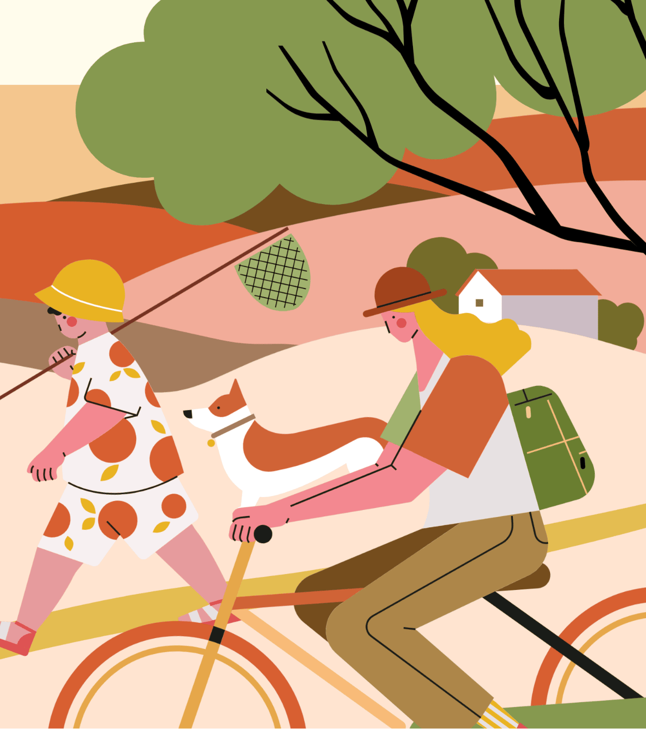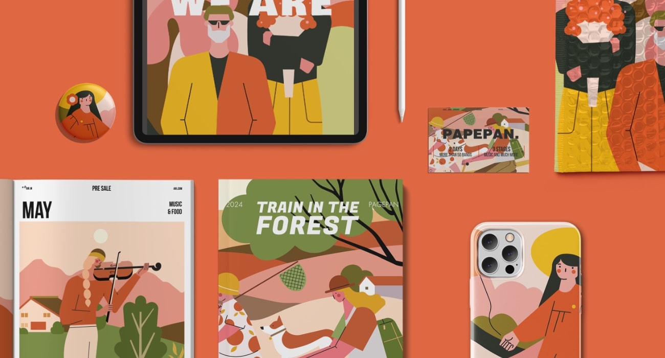 使用元素:人物、动物、植物、背景图形、氛围