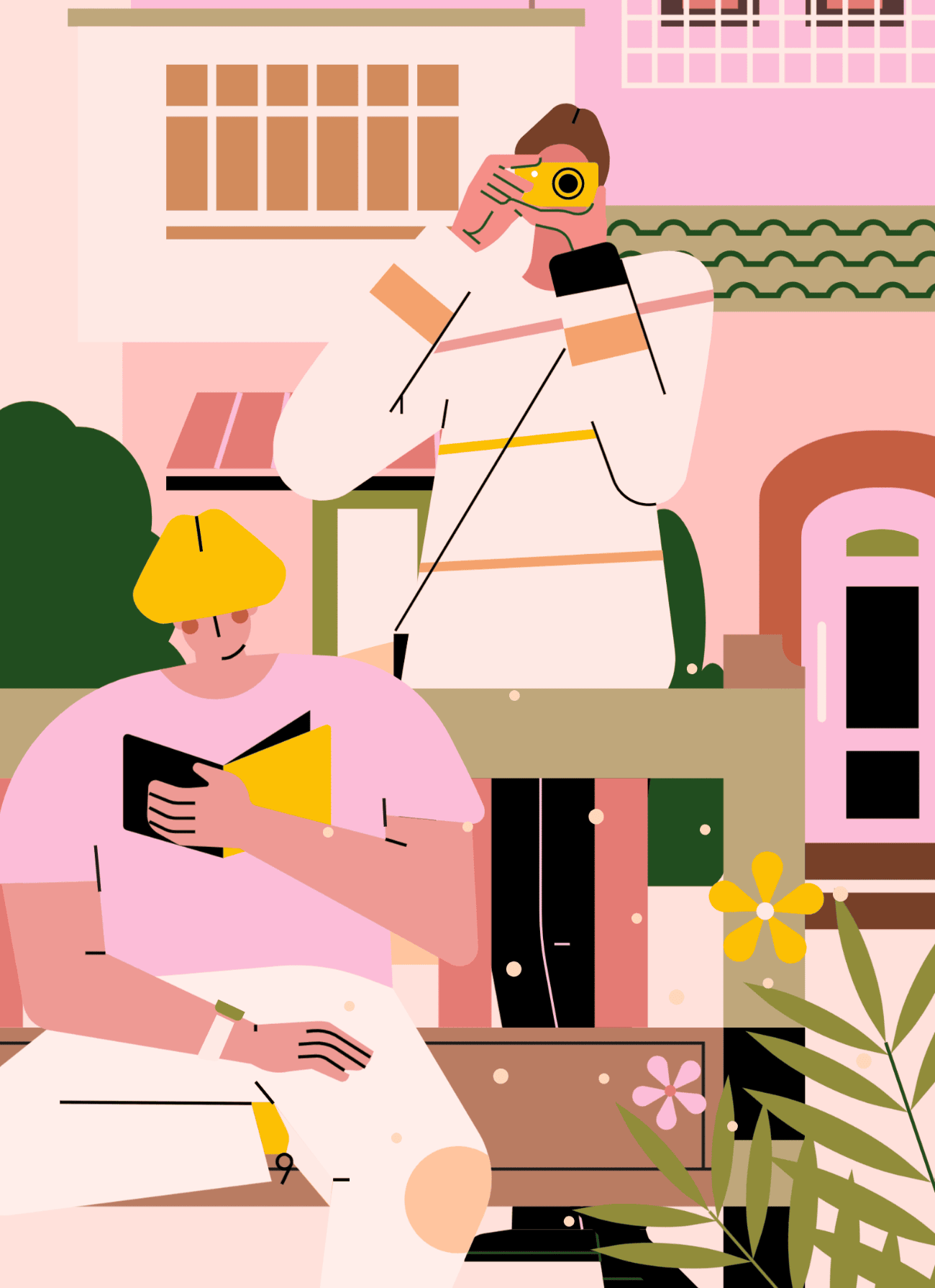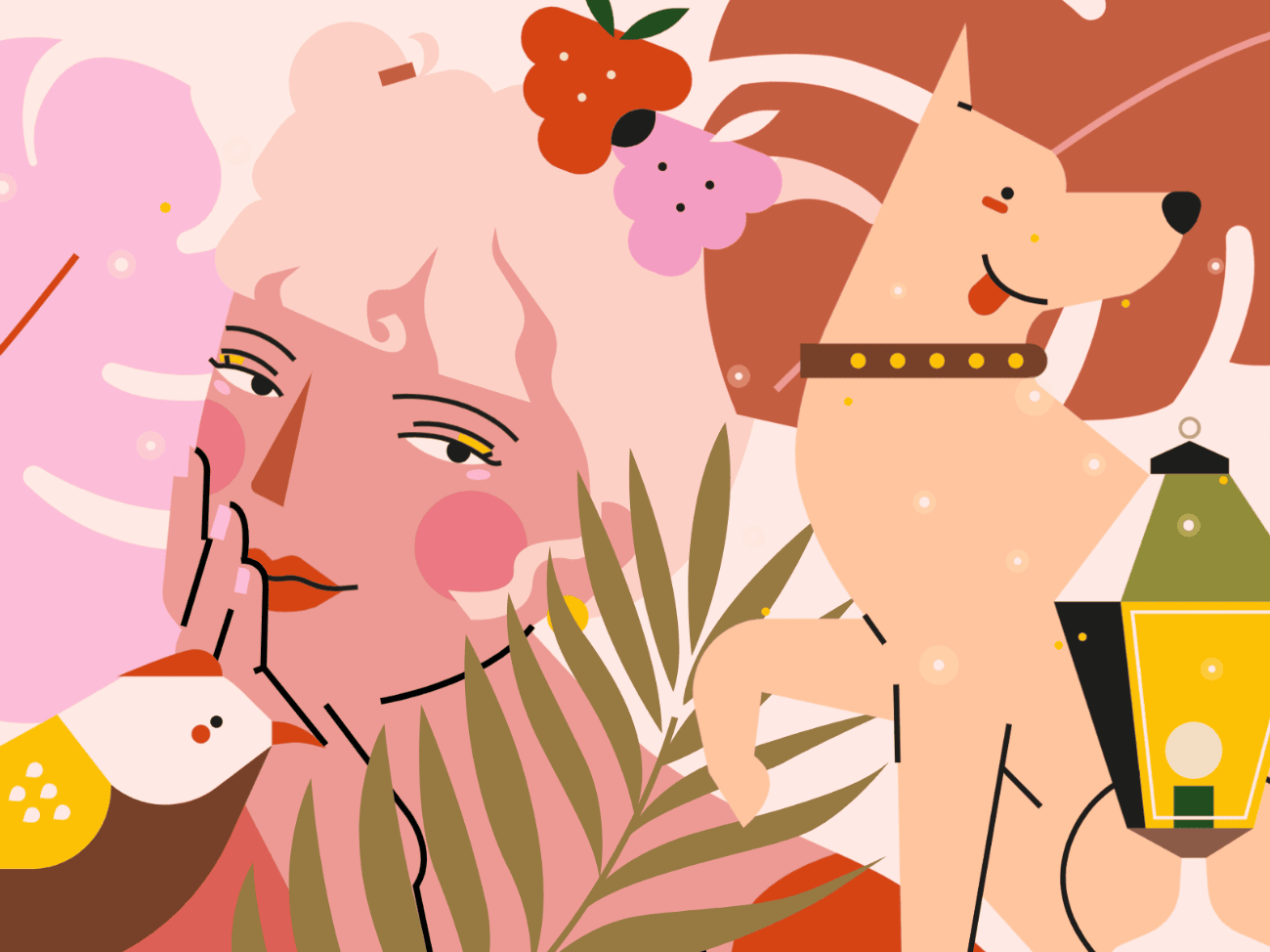 使用元素:肖像、植物、天气、氛围、背景图形、形状