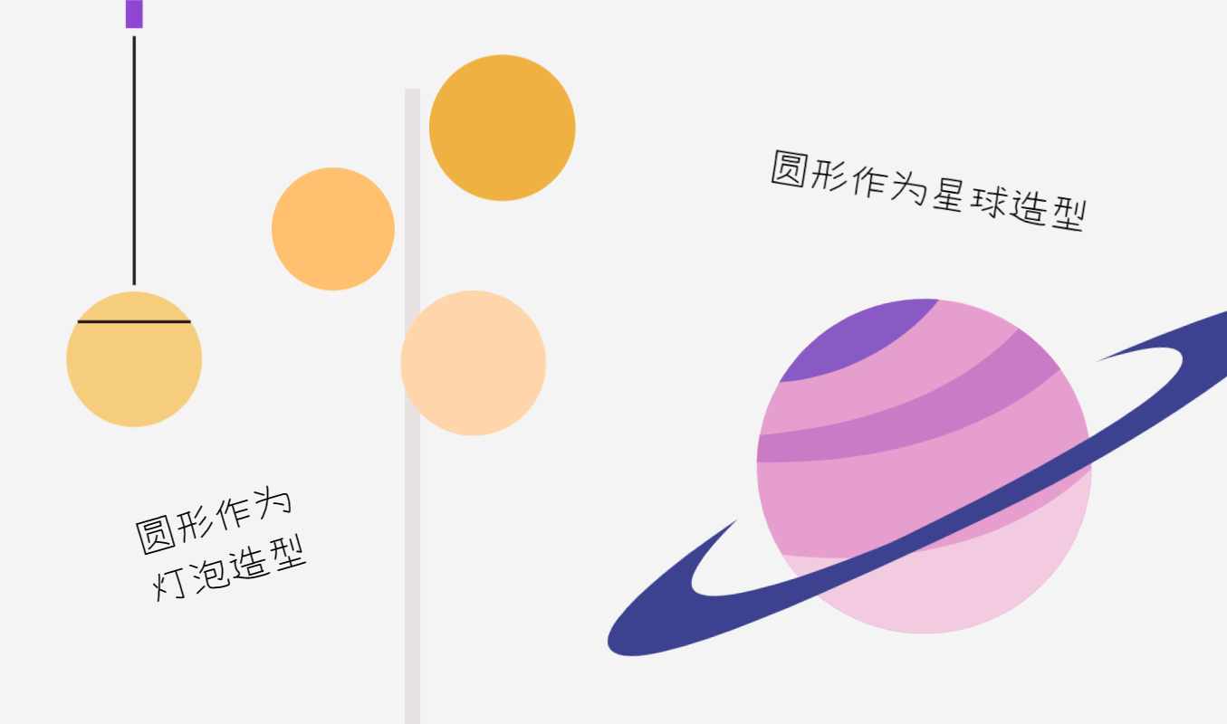 当圆形成为一件物体的轮廓面积时,它能柔化整个画面,比如灯泡、星球等,让人产生一种温暖和谐感。
