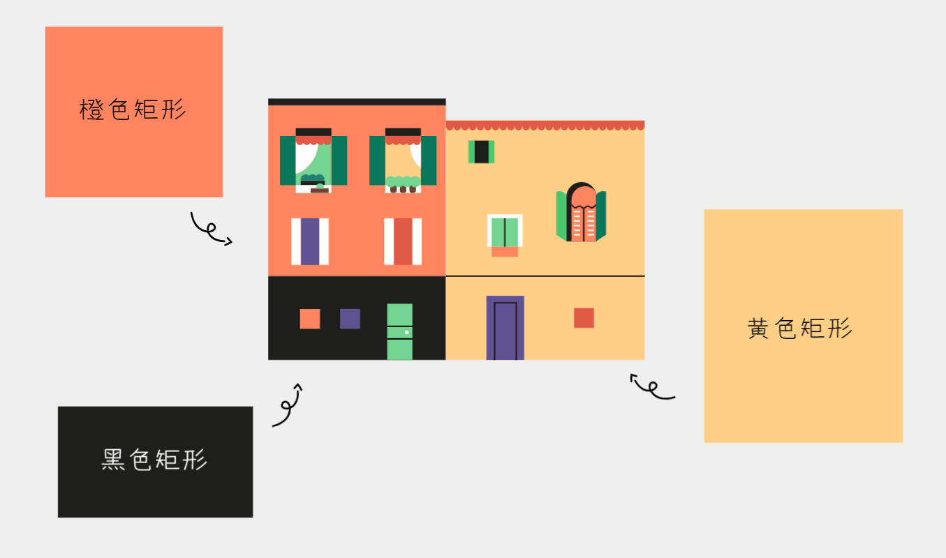 在画插画建筑类元素的时候,通常使用矩形来进行基础形的安排,所有建筑都要稳定,这也是符合我们日常的认知基本要求的。所以也是硬件基础。