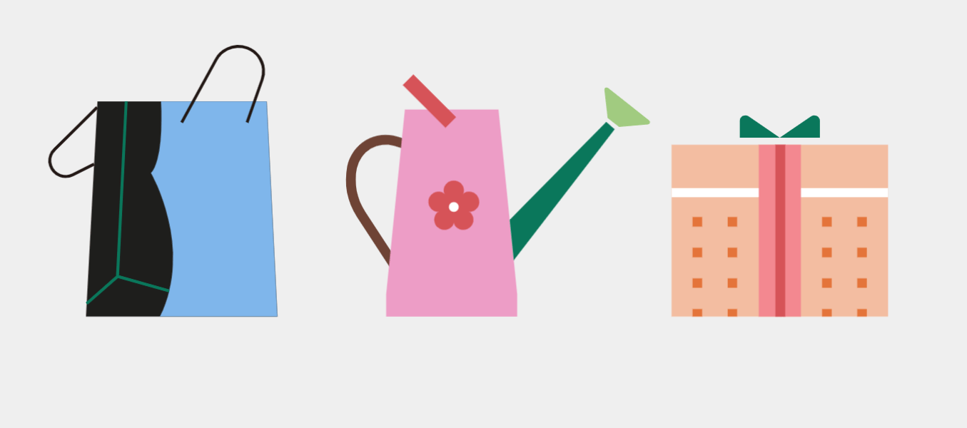 虽然很多时候,我们不一定使用方形或者长方形,有可能是梯形、平行四边形,但都在借用“方形”的笔直轮廓线带来的力量感塑造元素外观。同时,这种笔直的简洁效果,也能让插画看起来带着现代感的风格。