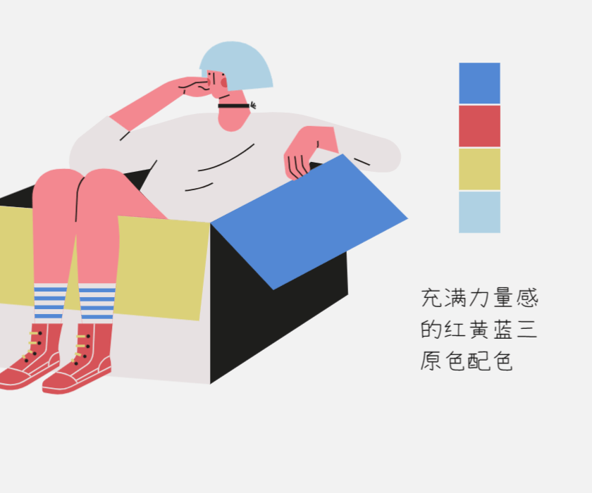 从色彩上看,所有形状均为单色,且多采用较为明快和跃动感的配色设计,没有渐变、笔触纹理,这让小园素的扁平风格带着未来感倾向,也在插画设计中具有极大的变通性和灵活性,比如可以修改颜色,拆分造型的结构等。