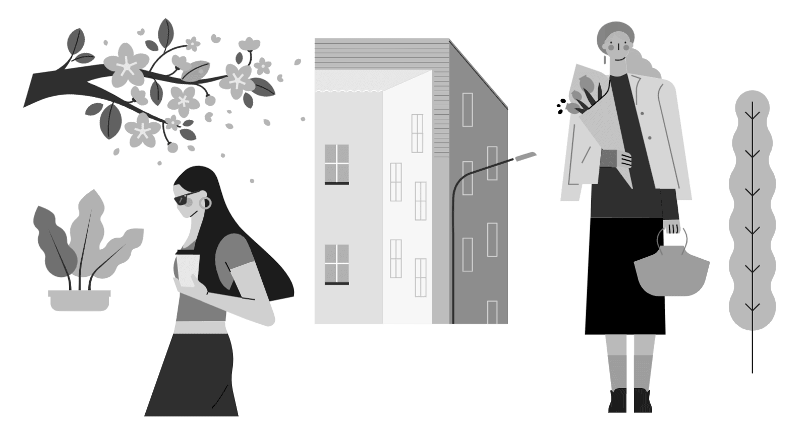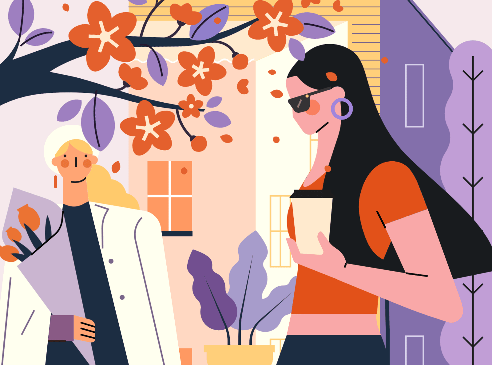 使用元素:人物、建筑、植物 | 配色风格:紫陌芬芳