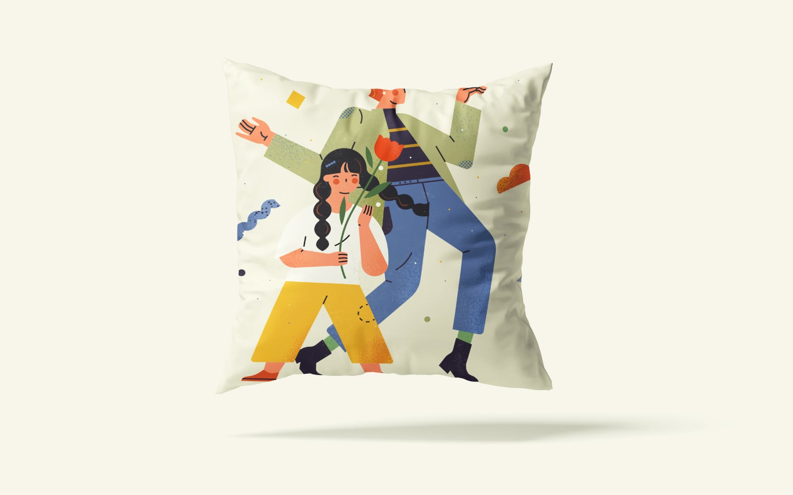 欢乐派对 使用元素:人物、儿童、形状 | 配色风格:光影尘嚣绿 开始编辑 这一次我想要使用纯色作为背景,应用简单的人物元素和形状点缀,重点突出人物本身的动作 主要使用元素 完成作品 这个作品我所使用的是光影尘囂绿 再拿到PS里做肌理的刻画和点缀,它会看上去更好玩更有趣 抱枕印花插画设计