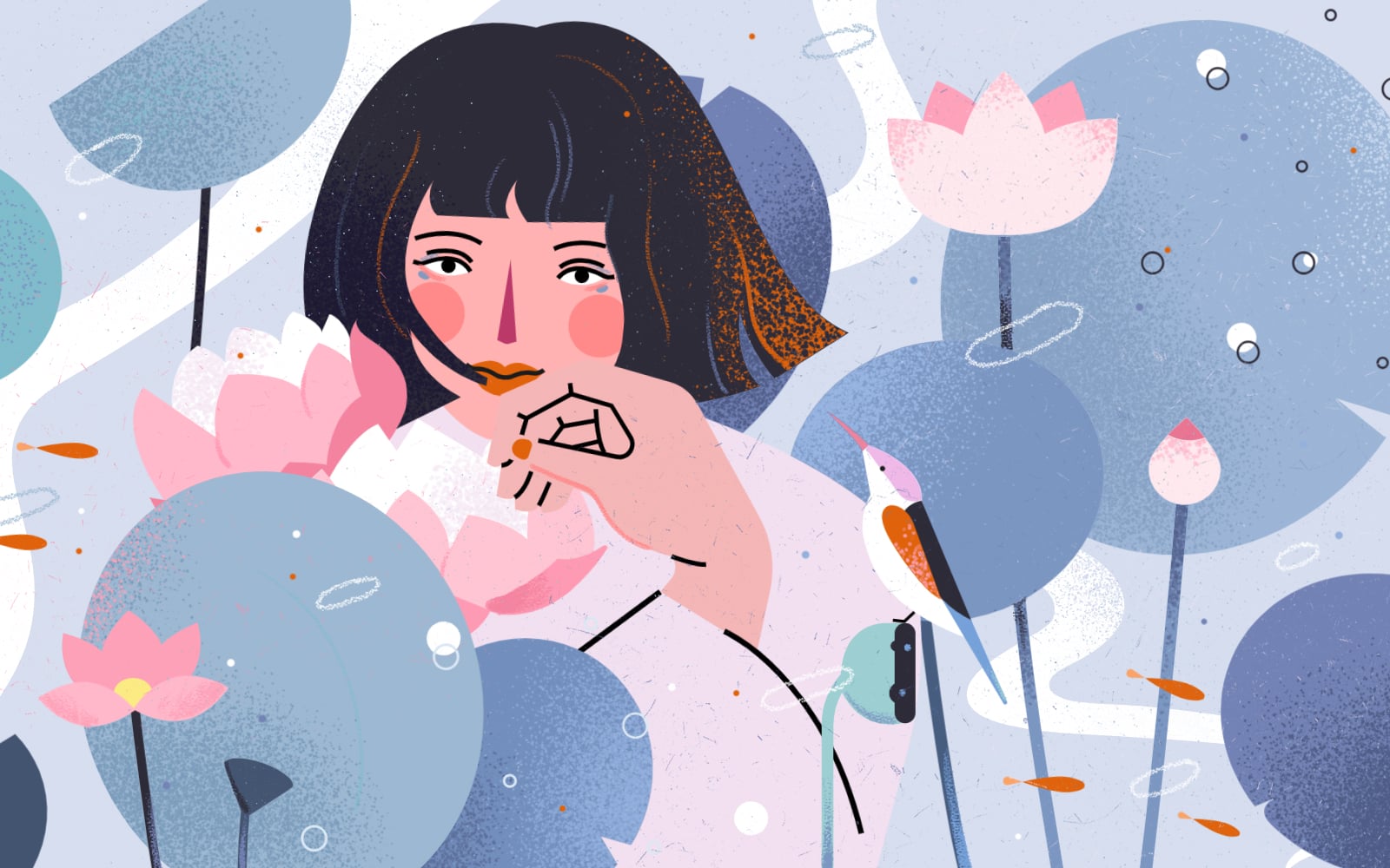 使用元素:肖像、动物、植物、氛围 | 配色风格:紫韵蓝雾
