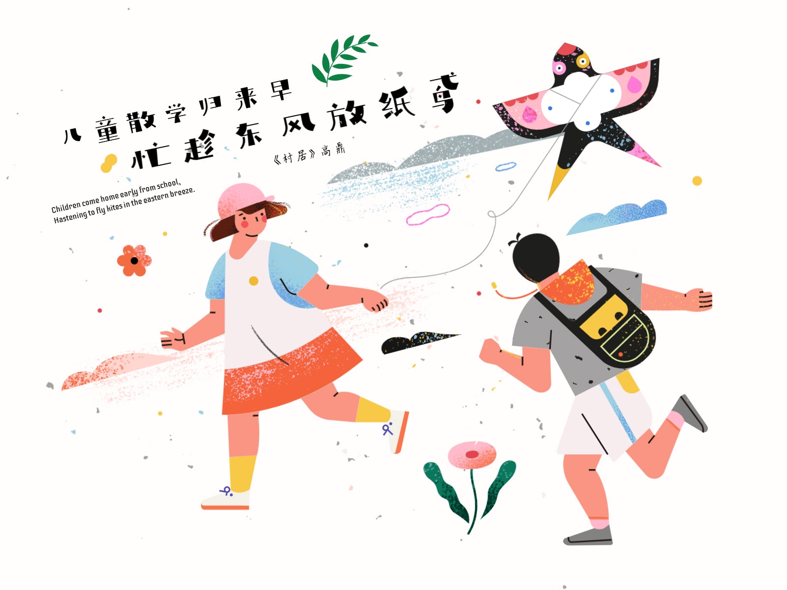 “儿童散学归来早,忙趁东风放纸鸢” 使用元素:儿童、物品、植物、氛围 开始编辑 主要使用元素 完成作品 《村居》草长莺飞二月天,拂堤杨柳醉春烟。儿童散学归来早,忙趁东风放纸鸢。 ——高鼎 继续增加纹理和细节刻画,完成