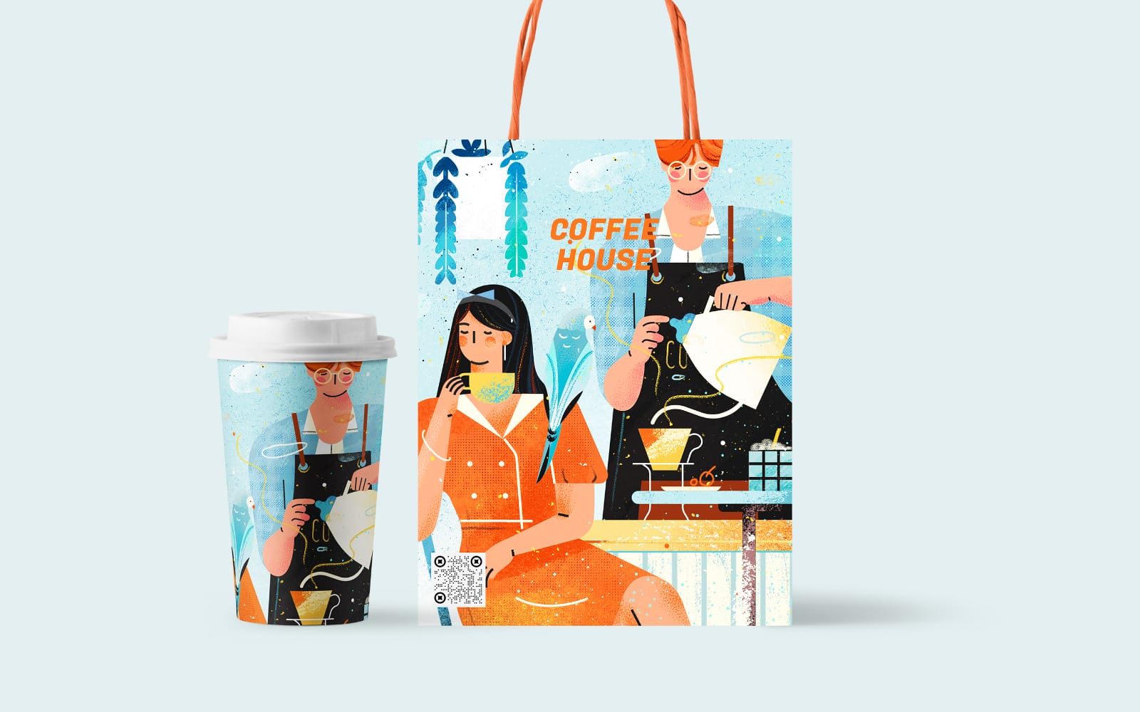 使用元素:人物、家居、陈设、动物 | 配色风格:鲜亮橘蓝