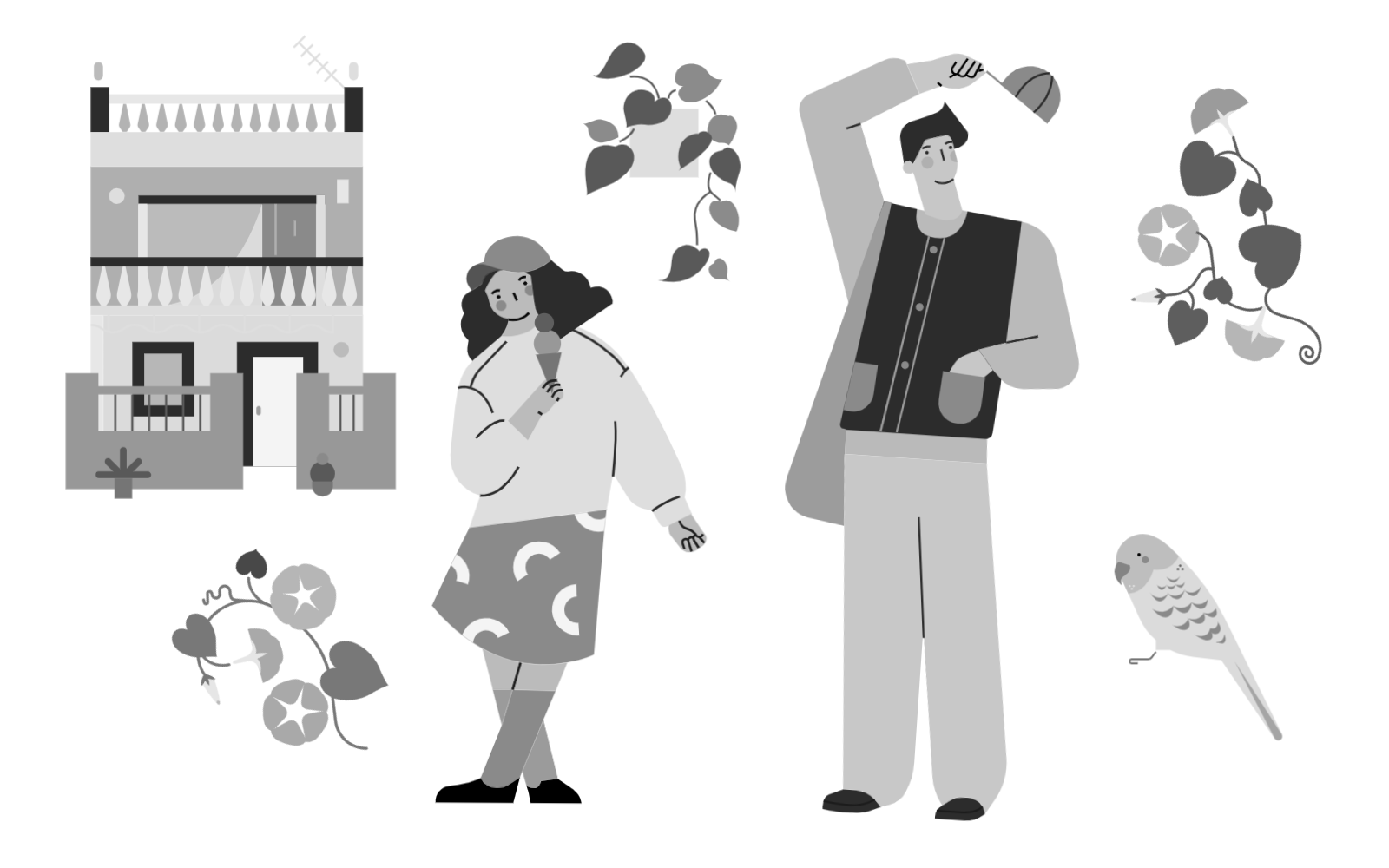 小园素的原有插画元素就是用来提供想象力平台的基础框架。