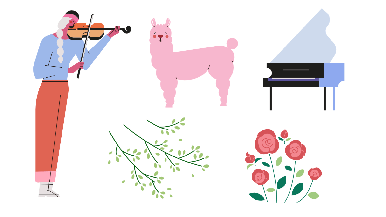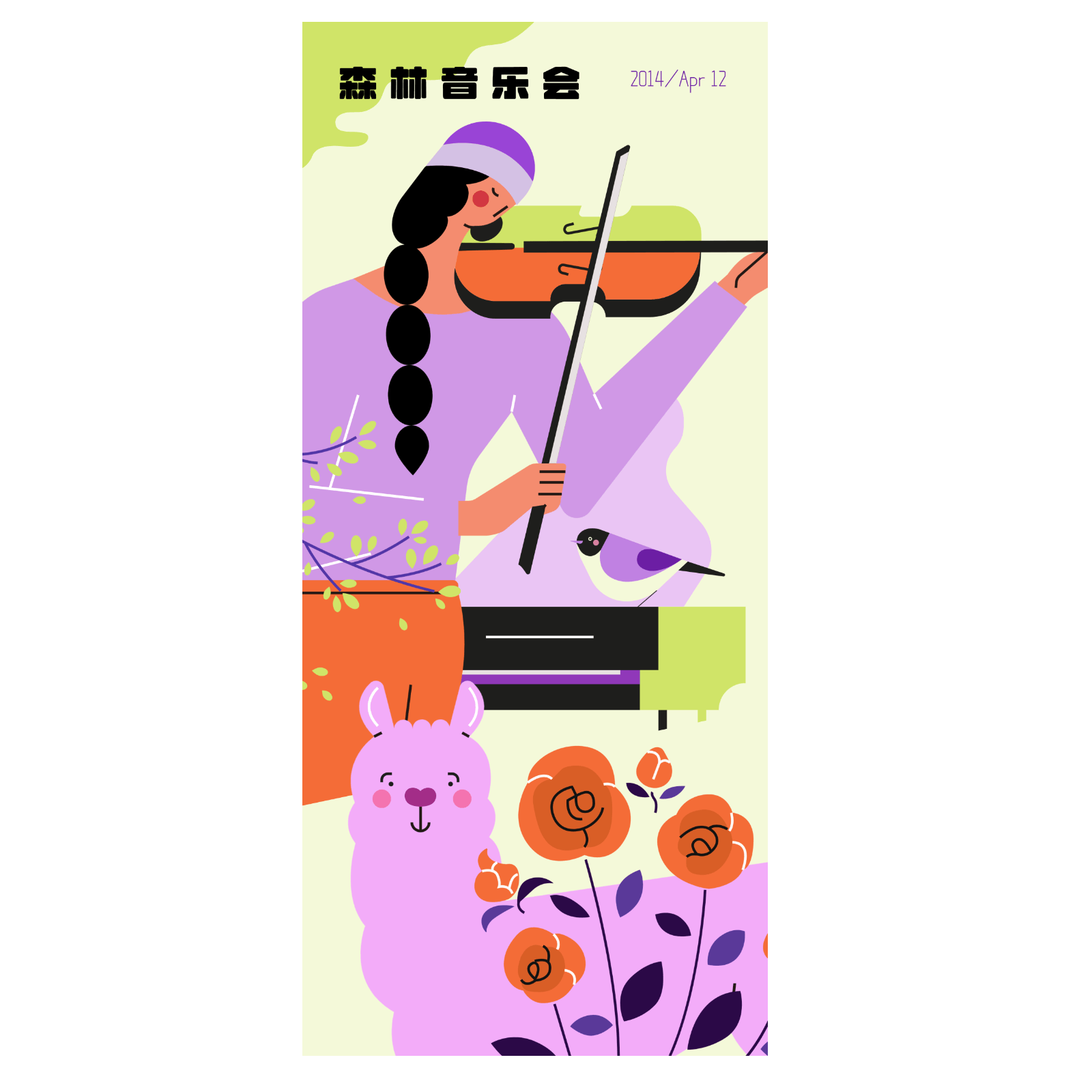 使用元素:人物、动物、音乐、植物 | 配色风格:鲜明紫绿