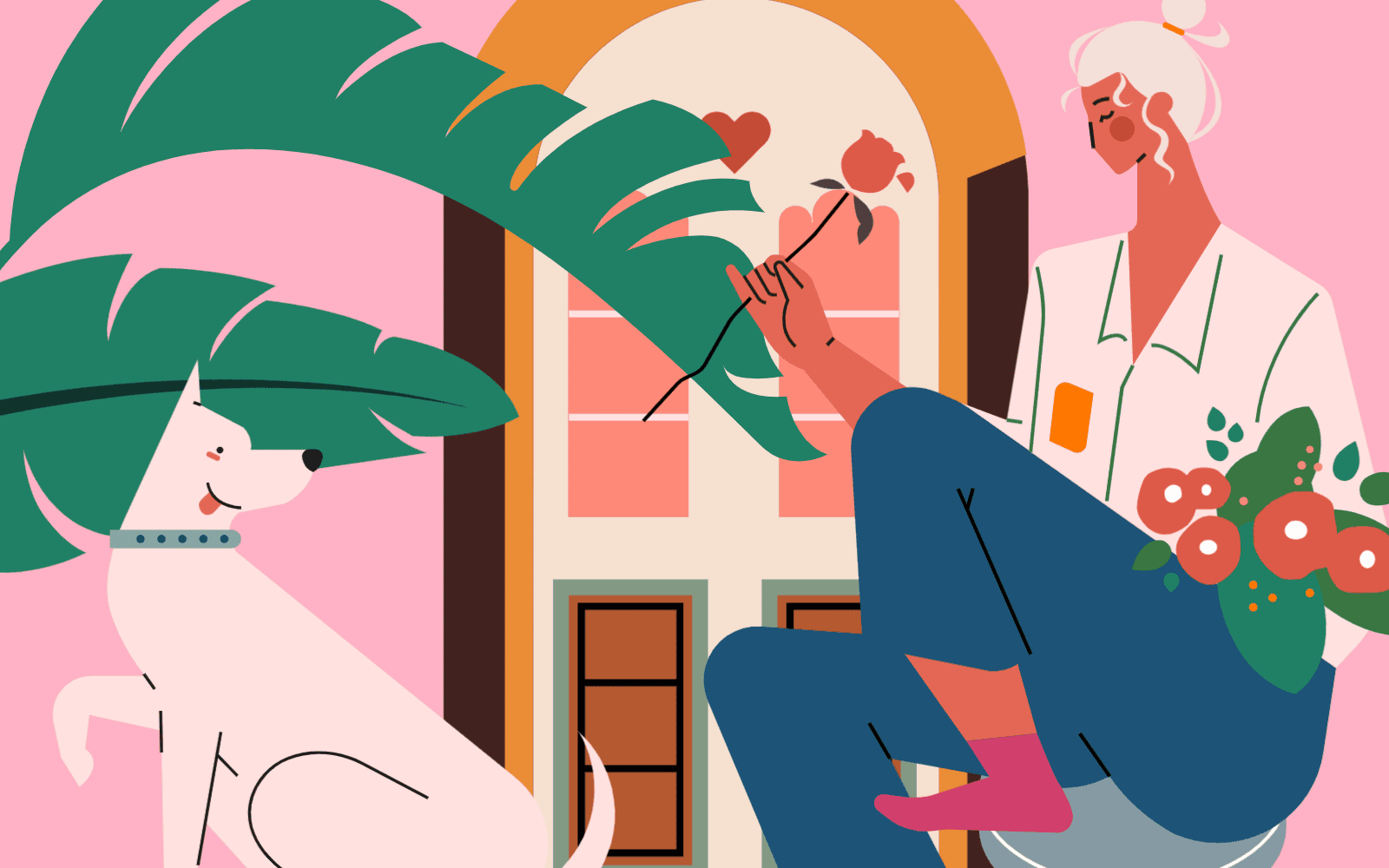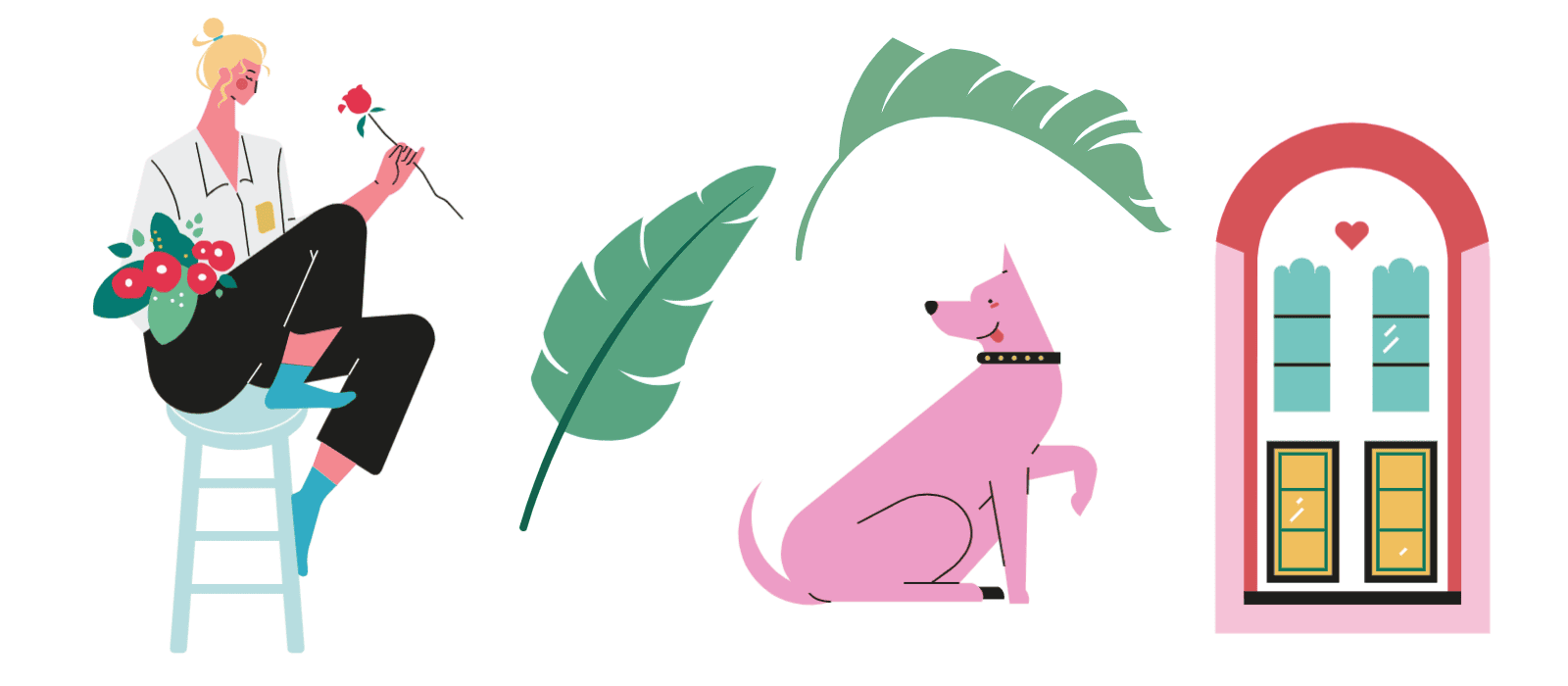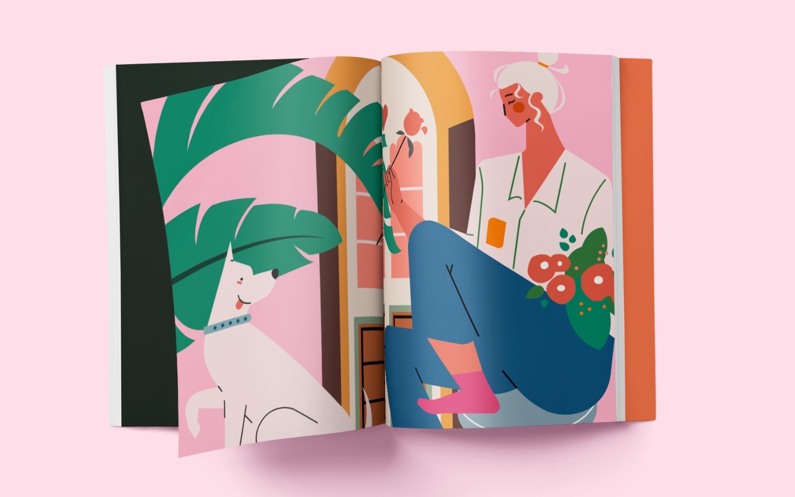 使用元素:人物、动物、植物、建筑 | 配色风格:甜粉橘绿