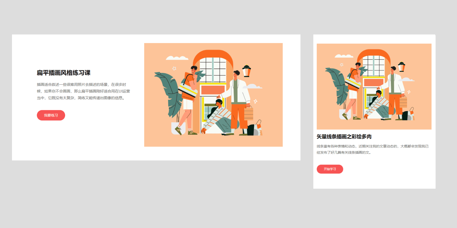 为小飞页的特性组件插画配图,特别在介绍一些具体图文项目展示时,非常适合概括出内容风貌