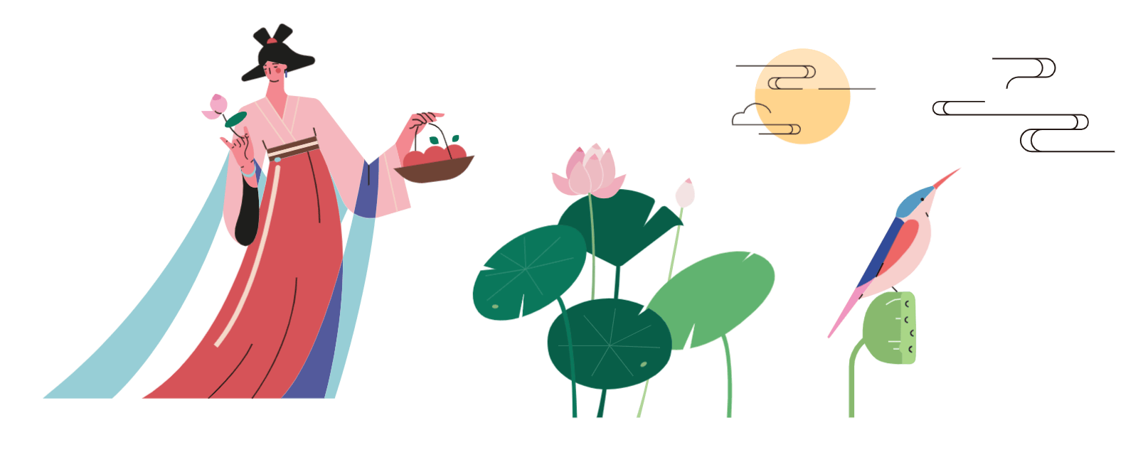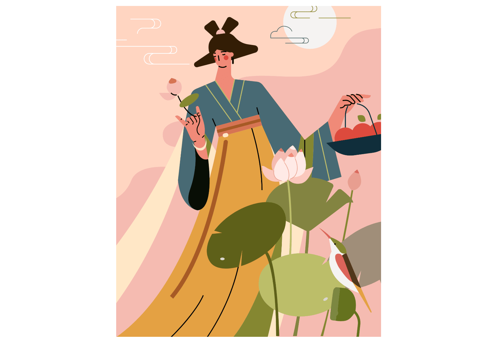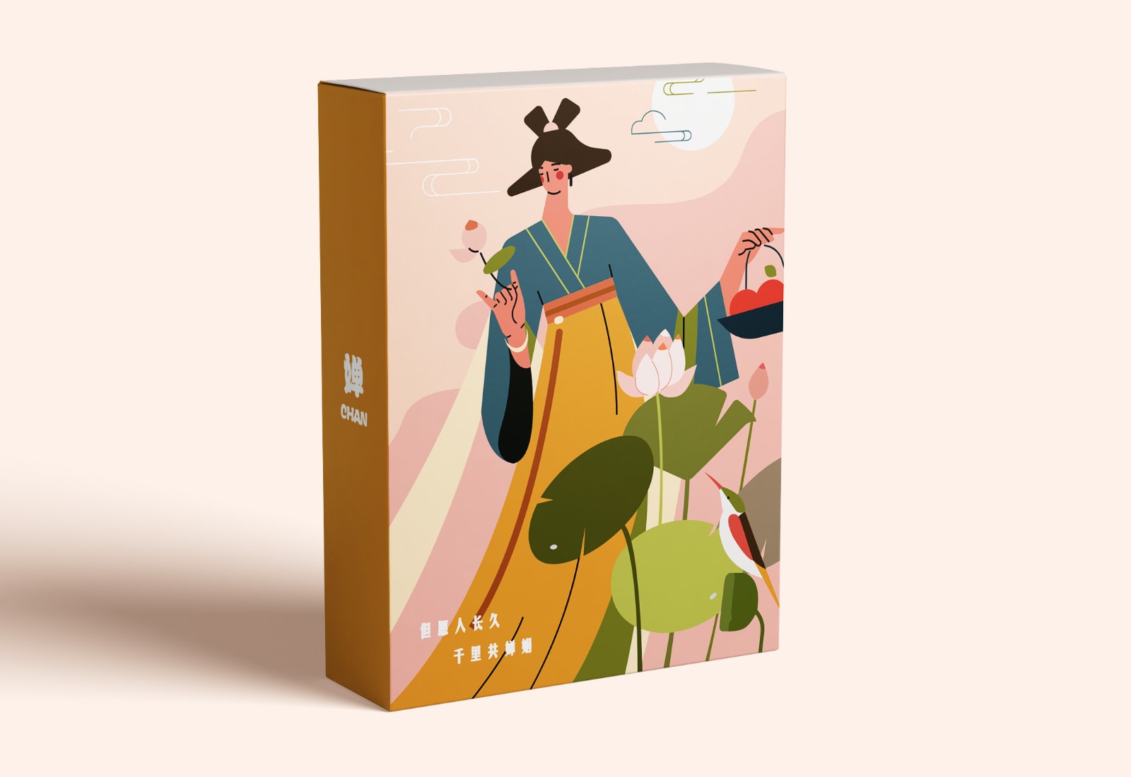 花好夏夜凉 使用元素:人物、动物、植物、天气 | 配色风格:秋香 开始编辑 主要使用元素 完成作品 这一次我所使用的是比较生疏的古典韵味配色,尝试在扁平风格插画中使用不太饱和的古典色彩来表现插画,看起来效果不错 包装盒插画设计