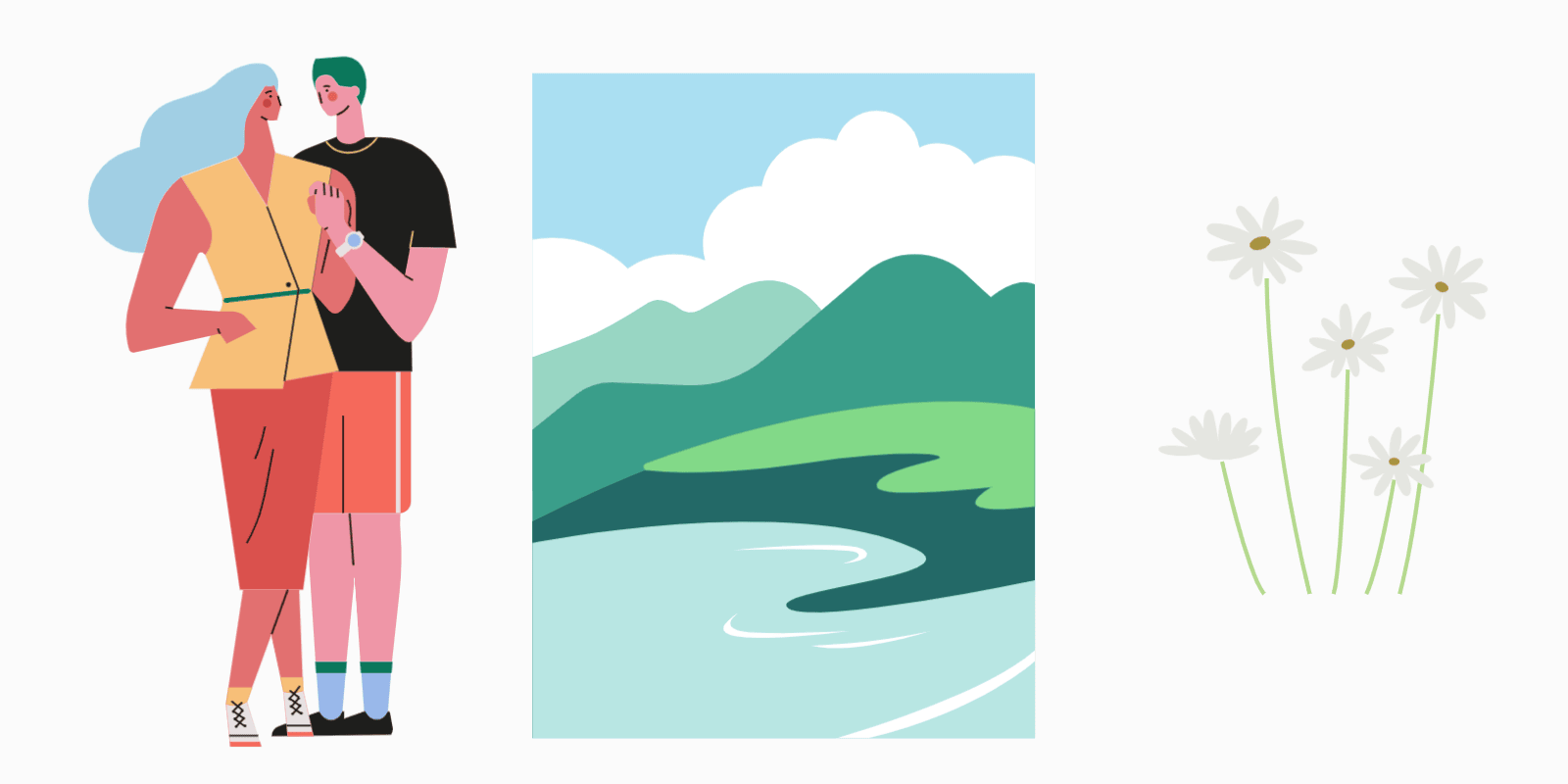 使用元素:人物、植物、风景 | 配色风格:青野黄绿