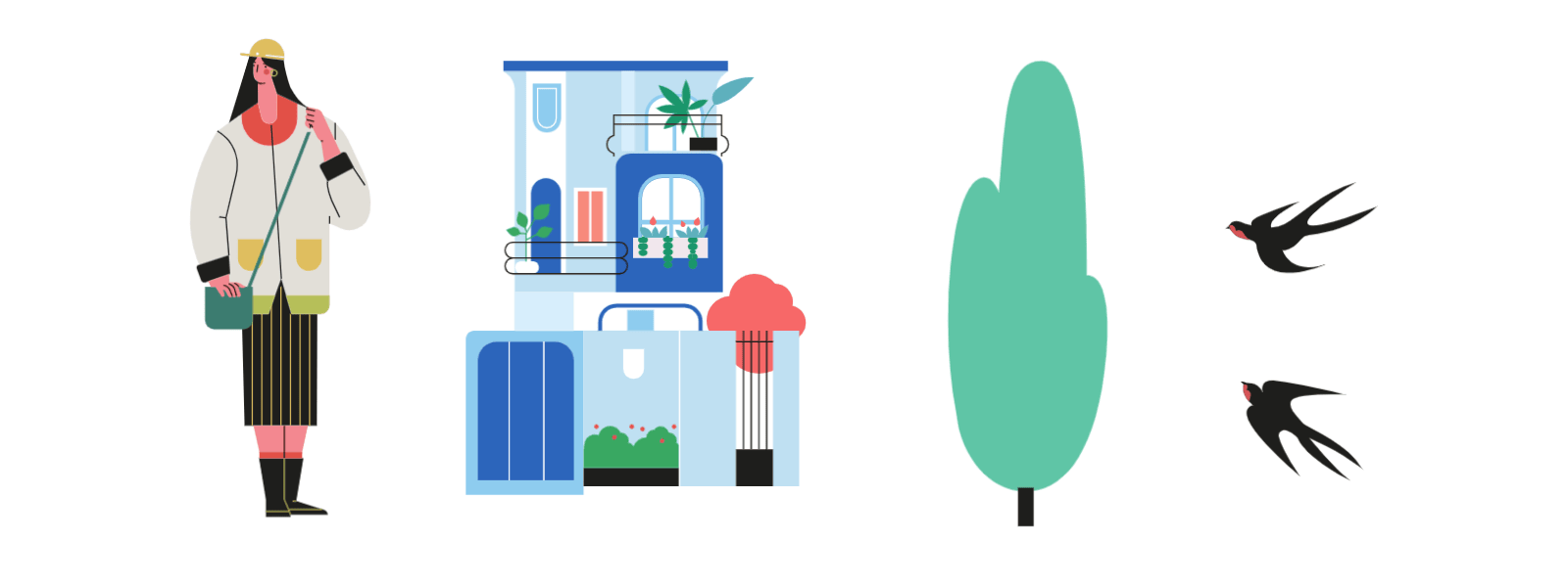 使用元素:人物、建筑、植物、动物 | 配色风格:粉油彩