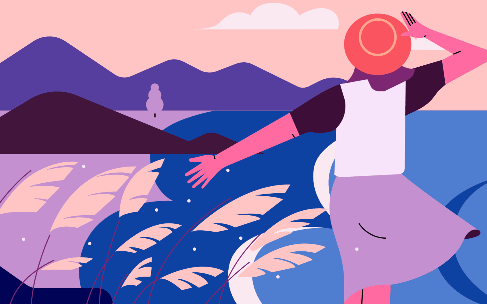 使用元素:风景、人物、植物 | 配色风格:紫暮夕阳
