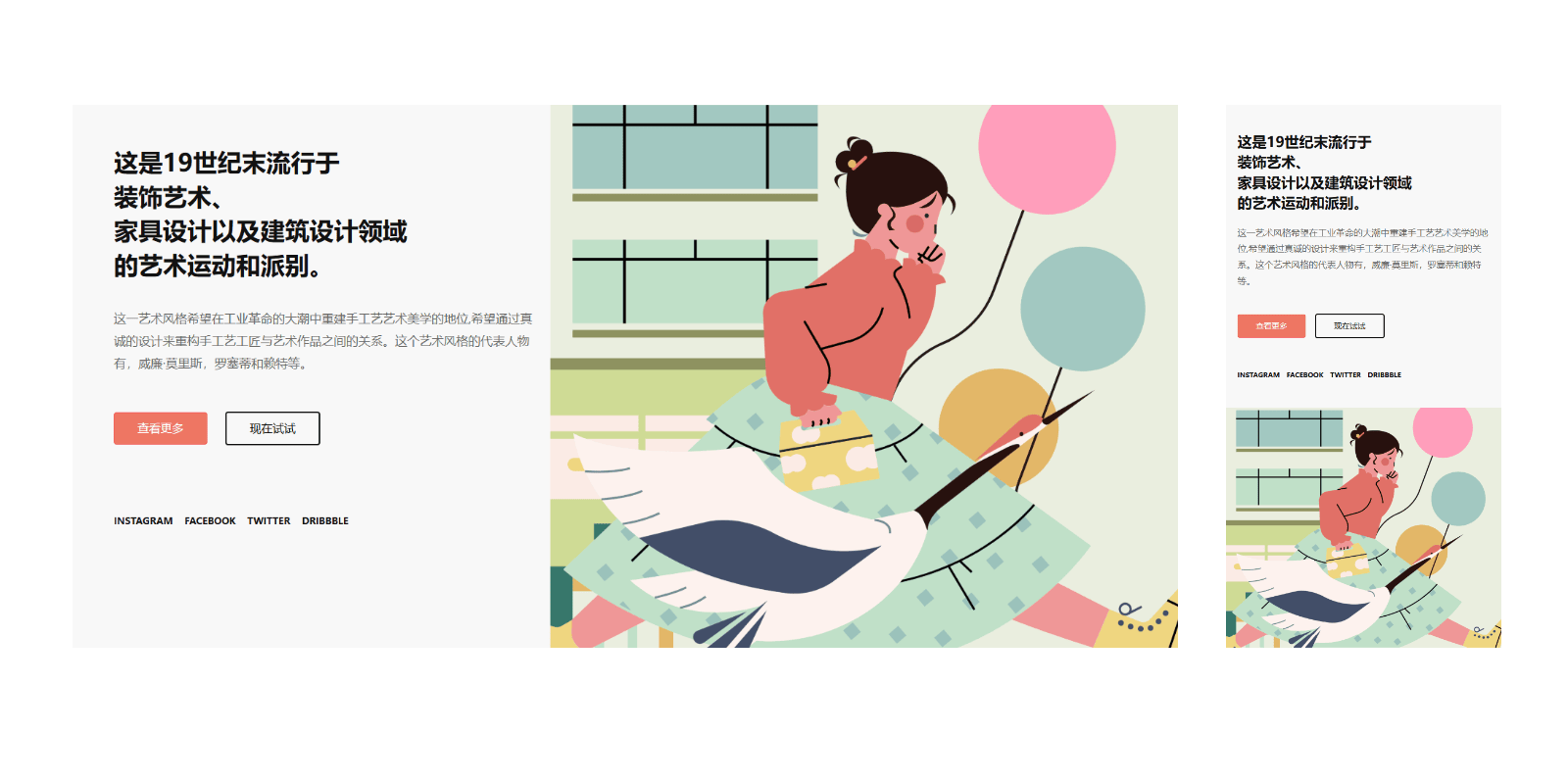 为小飞页当中的【内容】组件配图,所选用的是较丰富的文字表现,下面是不同尺寸的屏幕展示效果