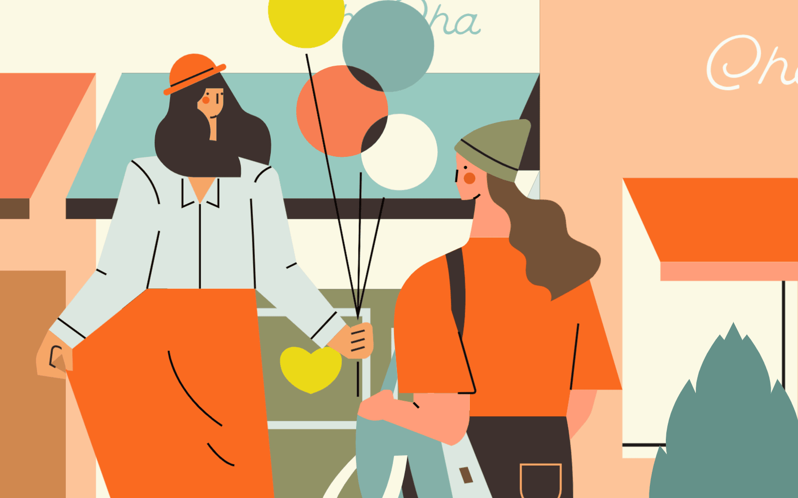 使用元素:人物、建筑、植物 | 配色风格:温柔米橙
