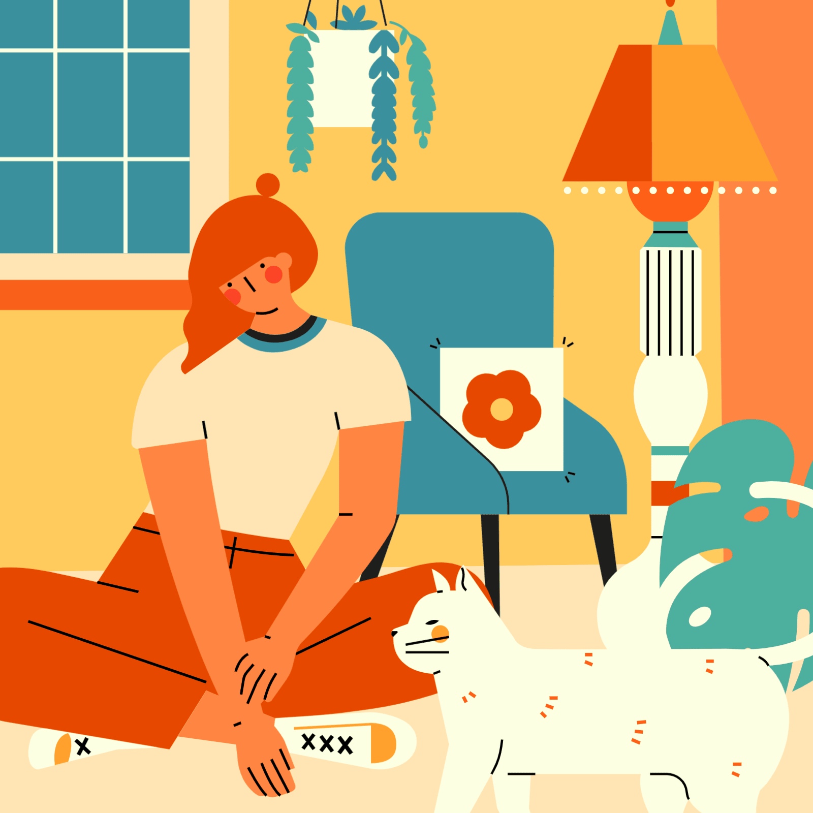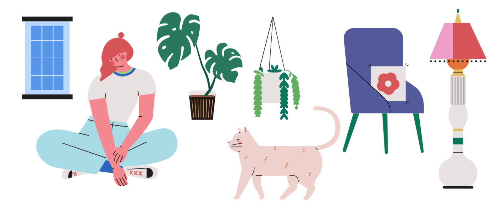 使用元素:人物、建筑、家居、植物、陈设、动物、背景图形 | 配色风格:氛围奶黄