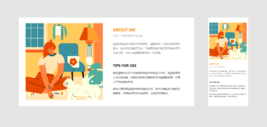 为小飞页的【关于】组件,作为一张搭配文字的左侧配图使用,下面是不同屏幕尺寸下的展示效果