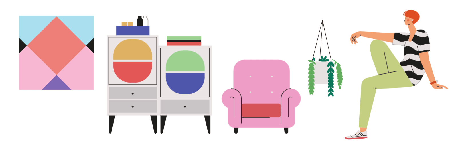 使用元素:人物、家居、陈设、背景图形 | 配色风格:氛围奶黄