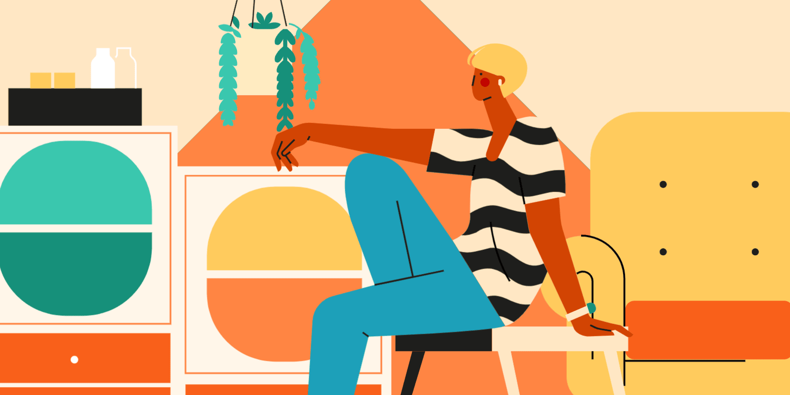 使用氛围奶黄作为这幅插画的配色,让室内看起来充满了黄色和橙色带来的活力与温暖感。