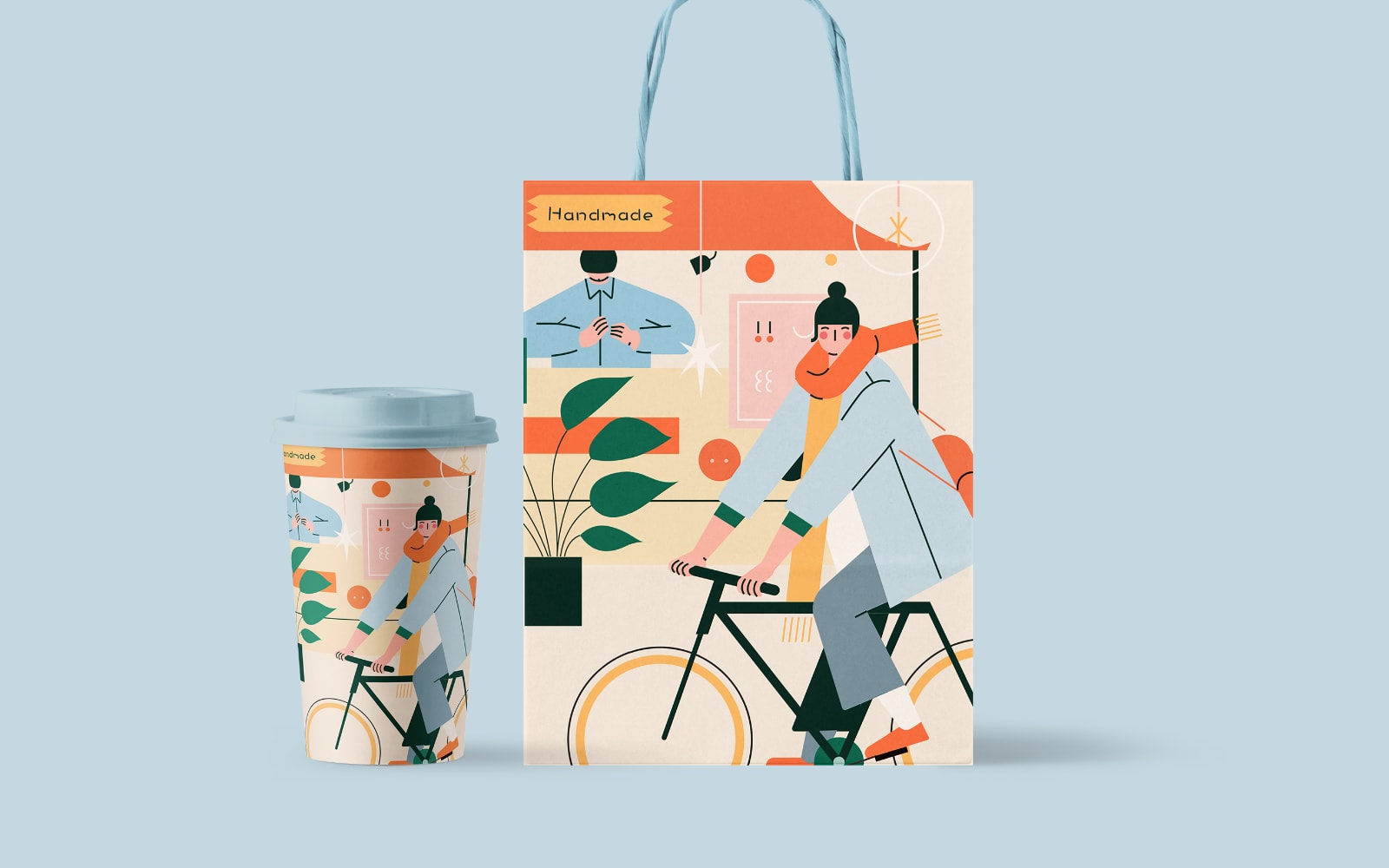 这是“市集”这个专题下的第三幅插画,这幅插画是竖向的作品。
