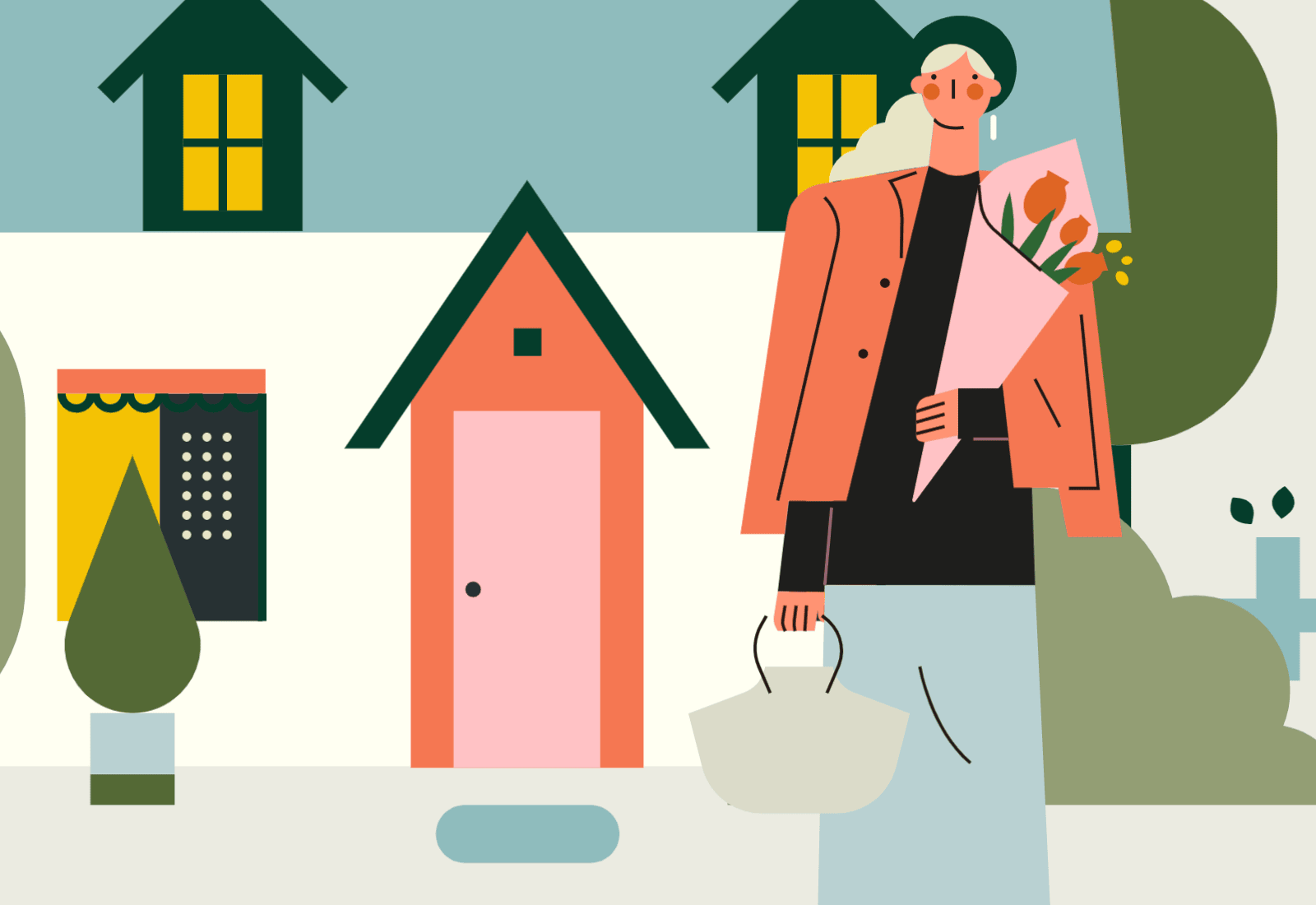 使用元素:建筑、人物 | 配色风格:蓝绿橙彩