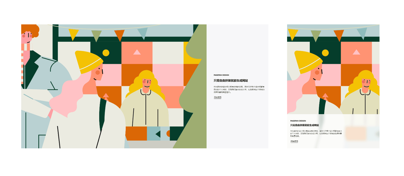 为小飞页的【封面】组件配图的时候,我采用了这幅插画,并且做了一些尺寸的调整,画面看起来更简约。这是同一个网页组件在不同尺寸下的展示效果。