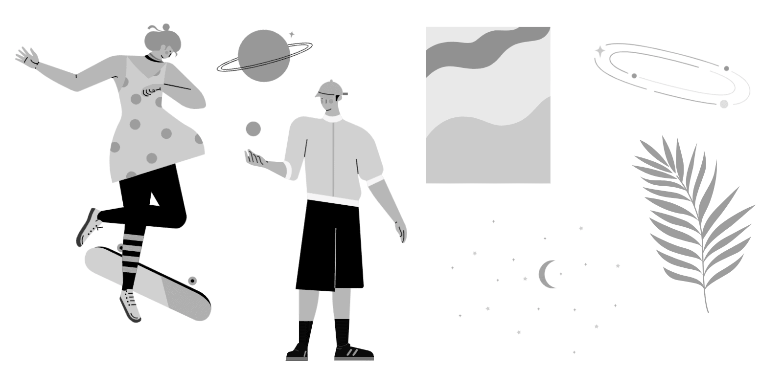 使用元素:人物、太空、植物、氛围、背景图形 | 配色风格:紫韵蓝雾