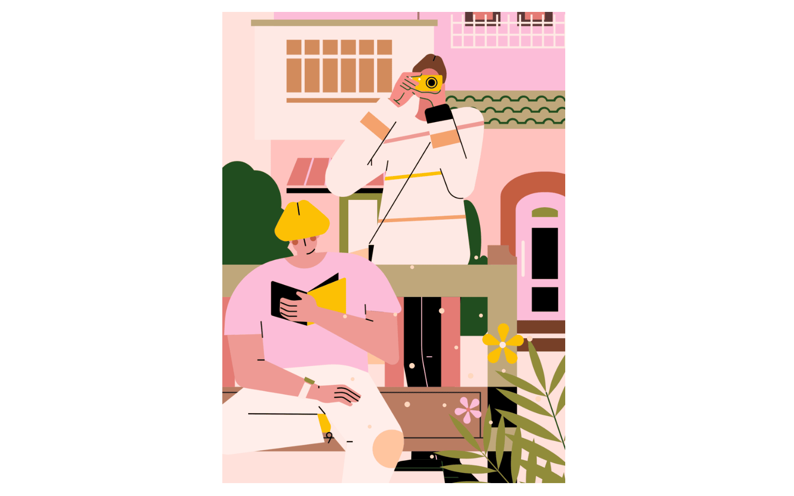 使用元素:人物、建筑、植物、氛围 | 配色风格:蜜桃金粉