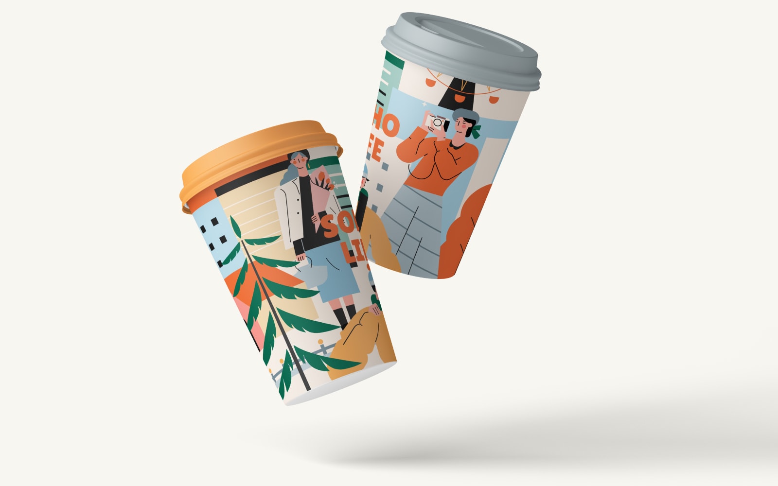 使用元素:人物、植物、建筑 | 配色风格:静涩奶蓝