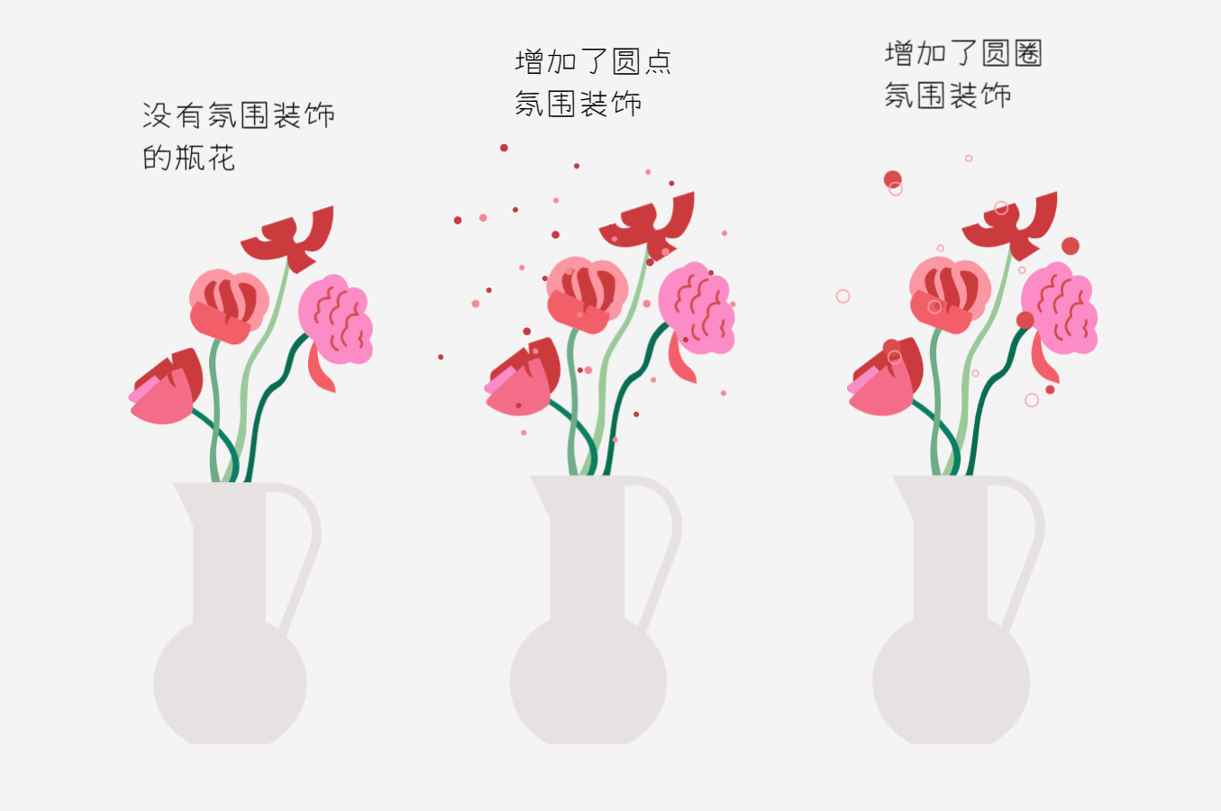 圆形在插画中使用时应该注意什么呢?圆形在作为点状的时候,大大小小的圆点就能铺陈出一种浪漫的氛围,尤其适合运用在花朵、叶子的元素旁边,它能作为氛围感的装饰物使用,也同时能让插画的层次感变得丰富。圆点越小,画面就越轻灵,如果换成圆圈以后,圆圈就很像是气泡,让画面变得更梦幻。