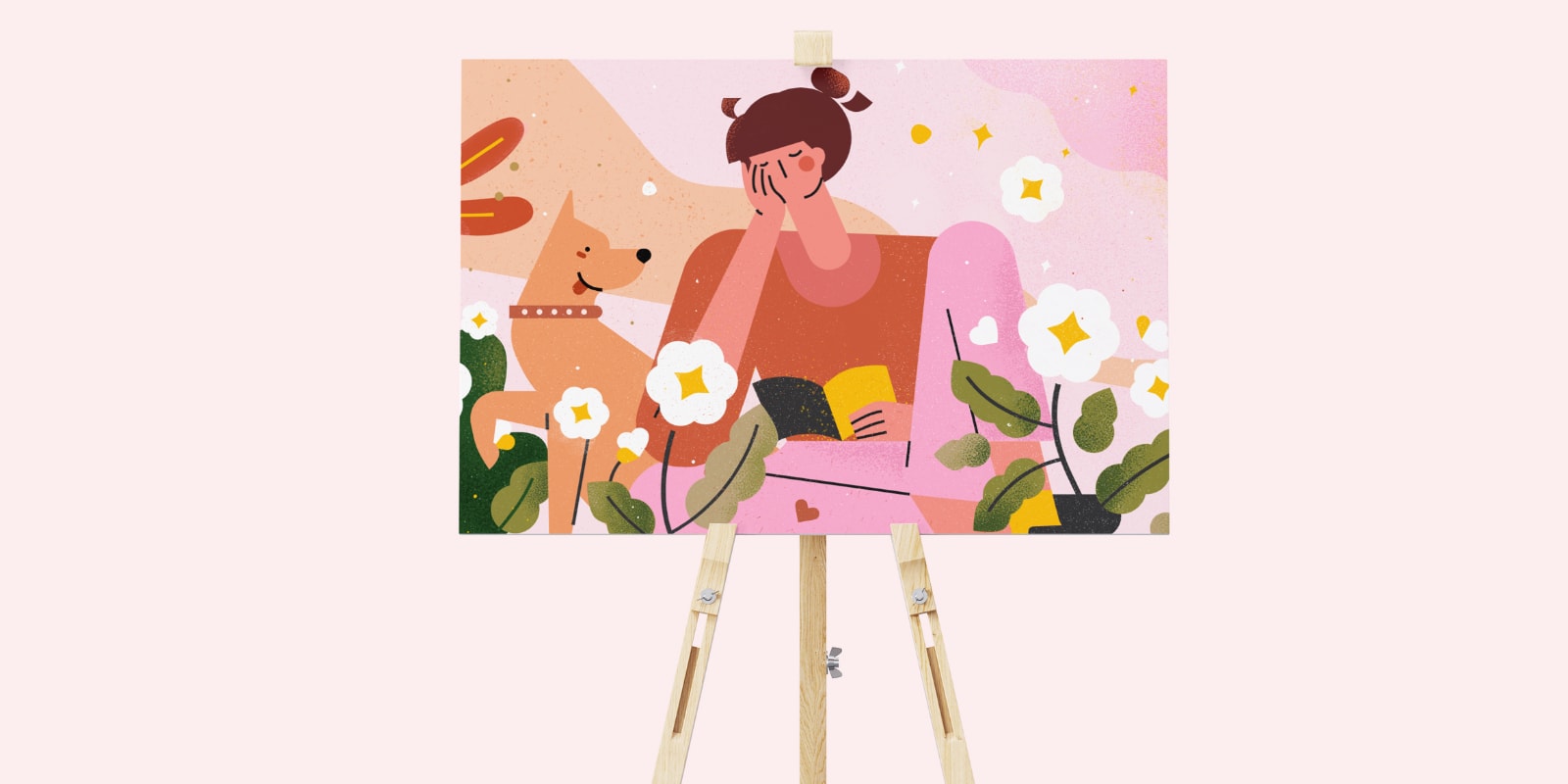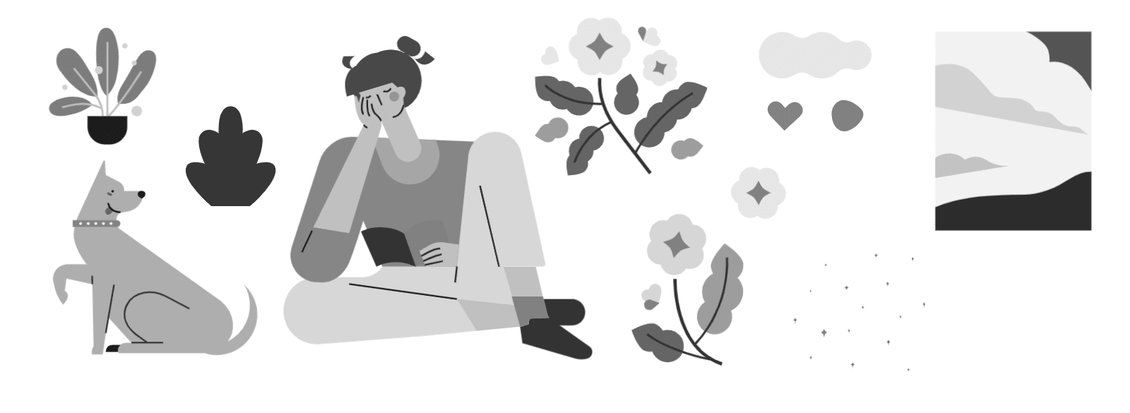 这次我主要使用的是修改过的人物元素,在第一版本的画法中整个结构看起来仍然不够协调,这次修改后的人物版本,并且,花朵植物也做了一定的调整,整了个星星眼。