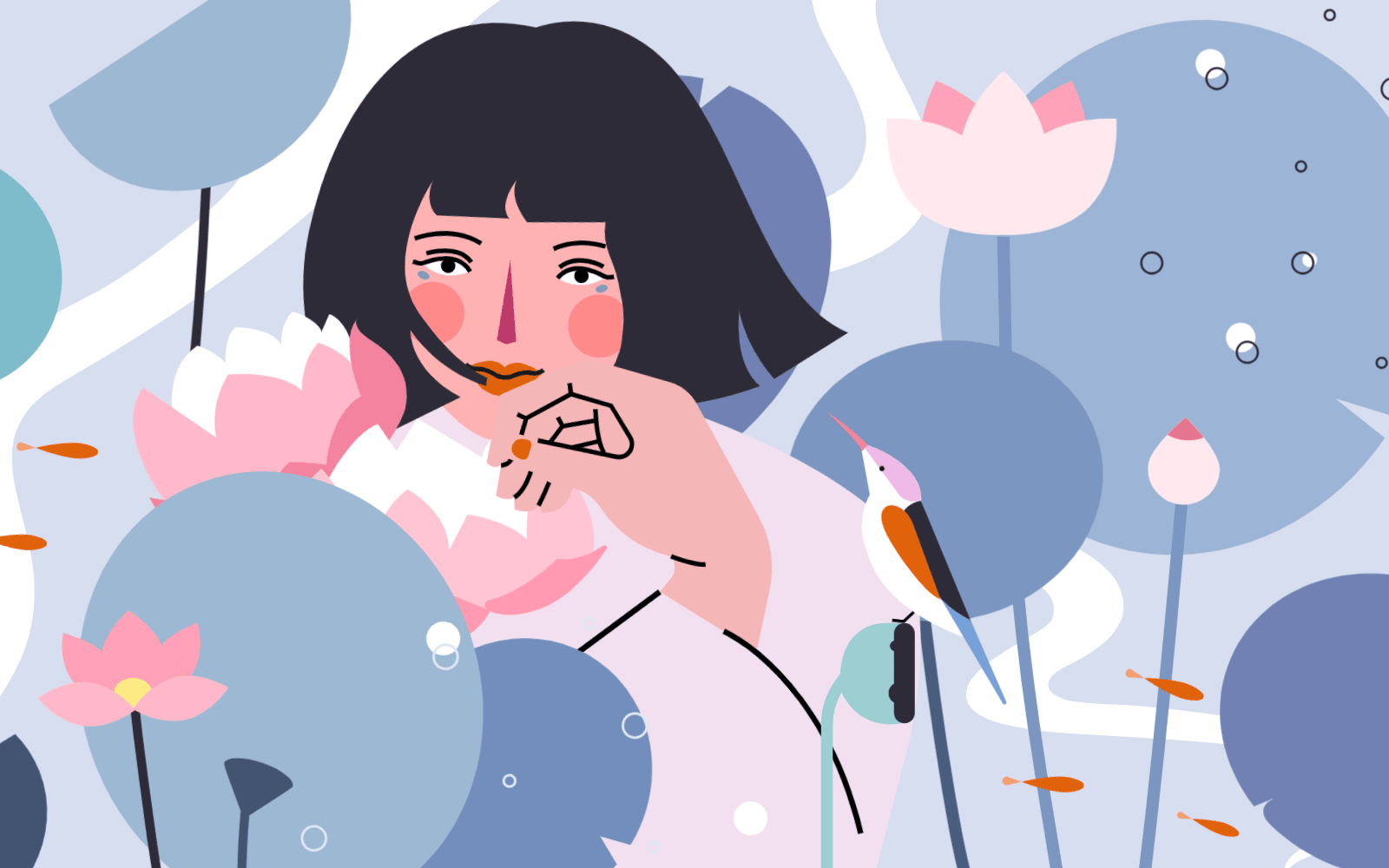 使用元素:肖像、动物、植物、氛围 | 配色风格:紫韵蓝雾