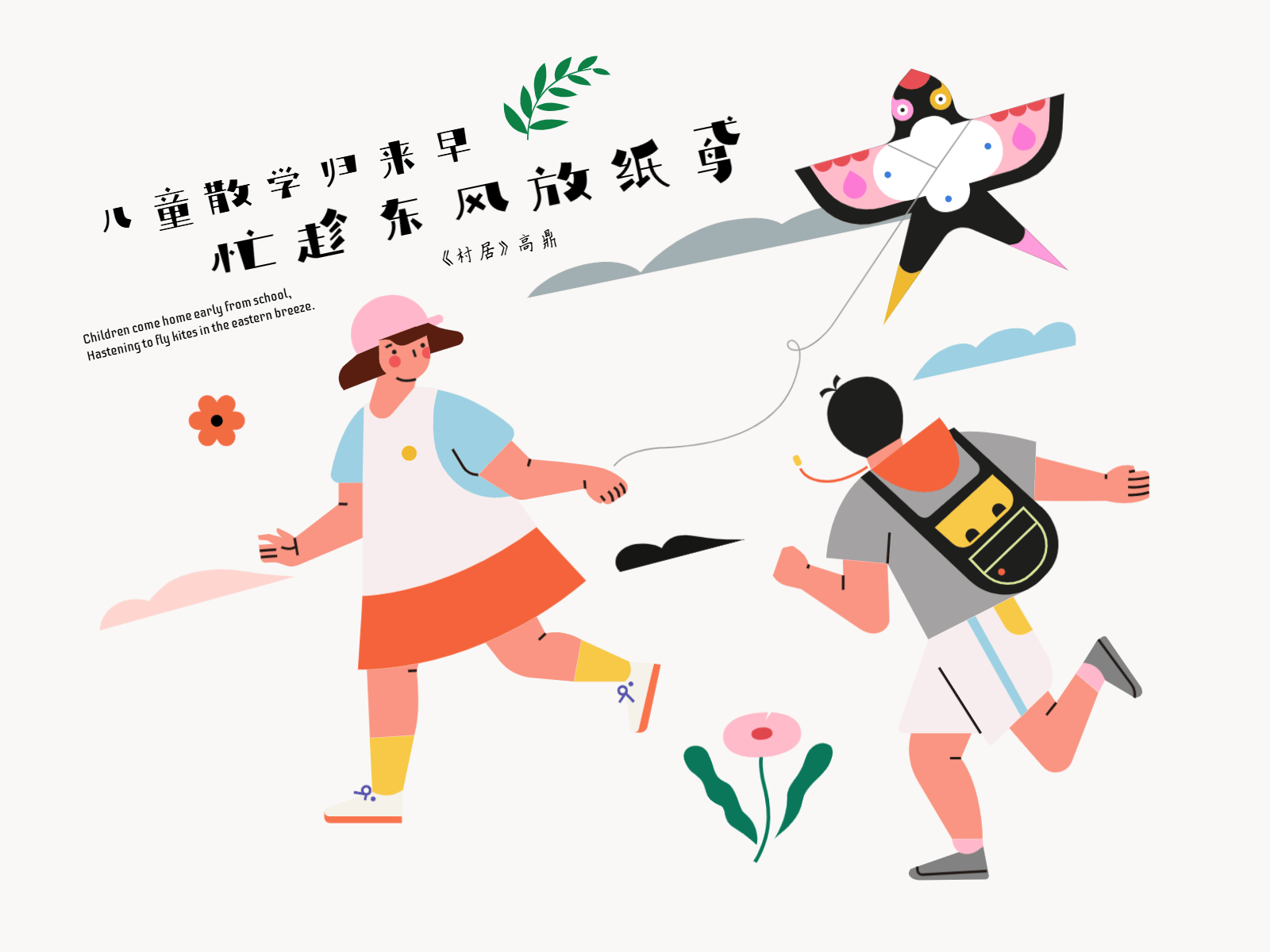 “儿童散学归来早,忙趁东风放纸鸢” 使用元素:儿童、物品、植物、氛围 开始编辑 主要使用元素 完成作品 《村居》草长莺飞二月天,拂堤杨柳醉春烟。儿童散学归来早,忙趁东风放纸鸢。 ——高鼎 继续增加纹理和细节刻画,完成