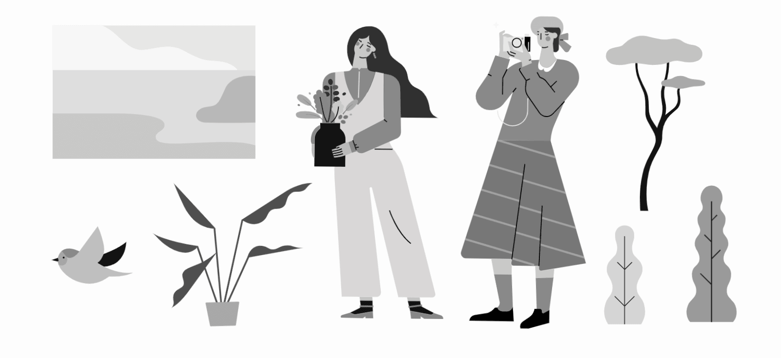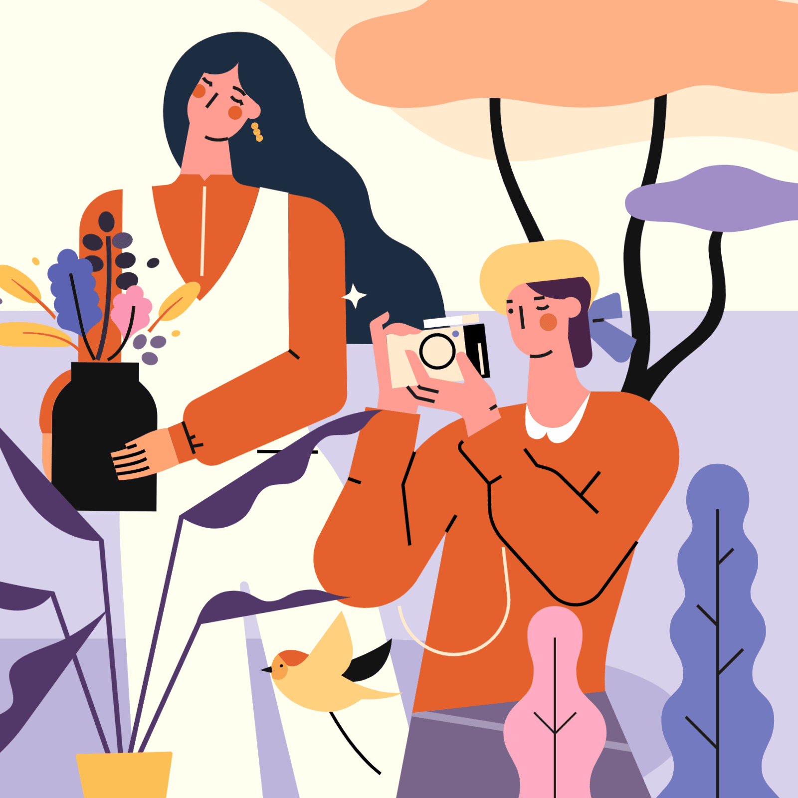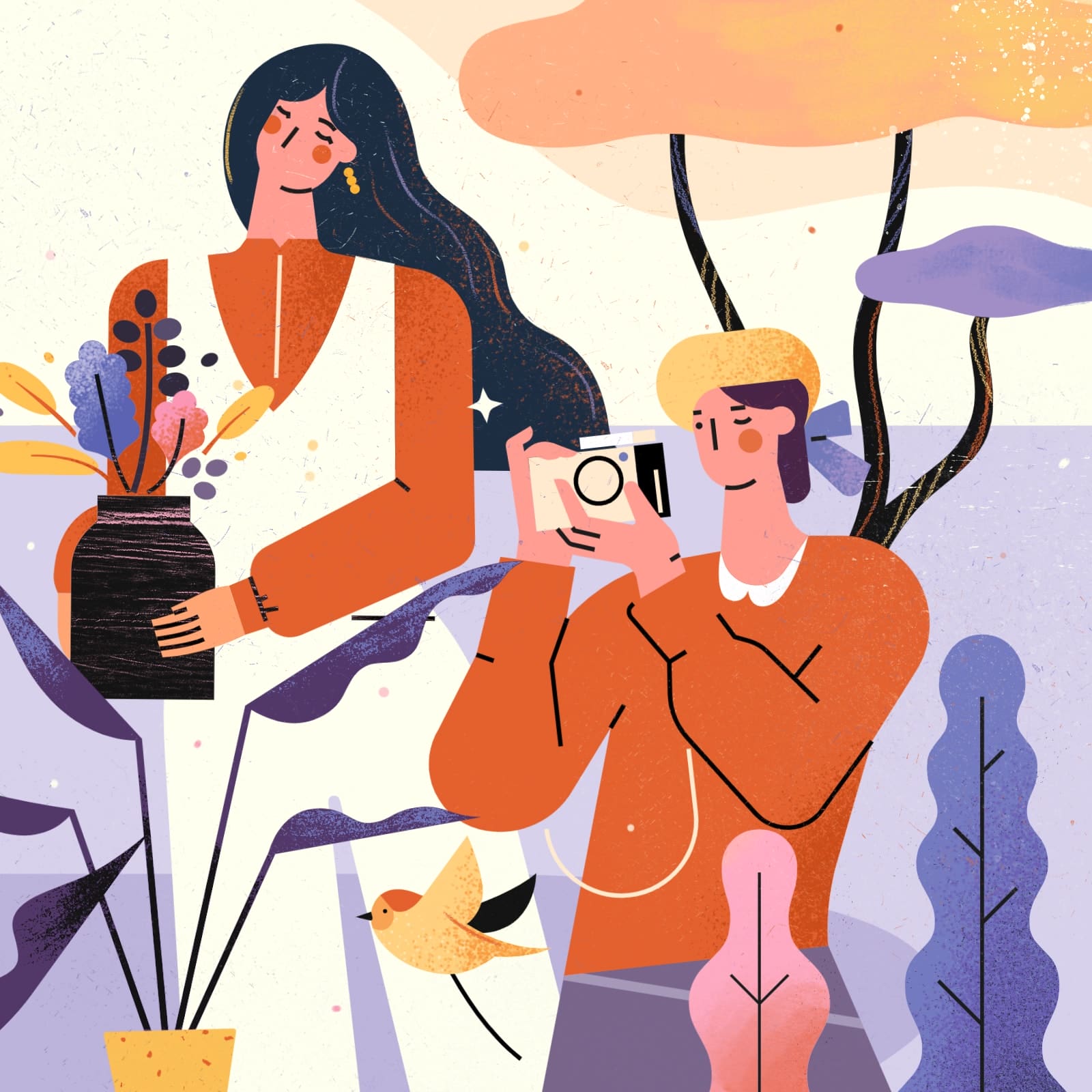 使用元素:人物、植物、动物、背景图形 | 配色风格:紫陌芬芳