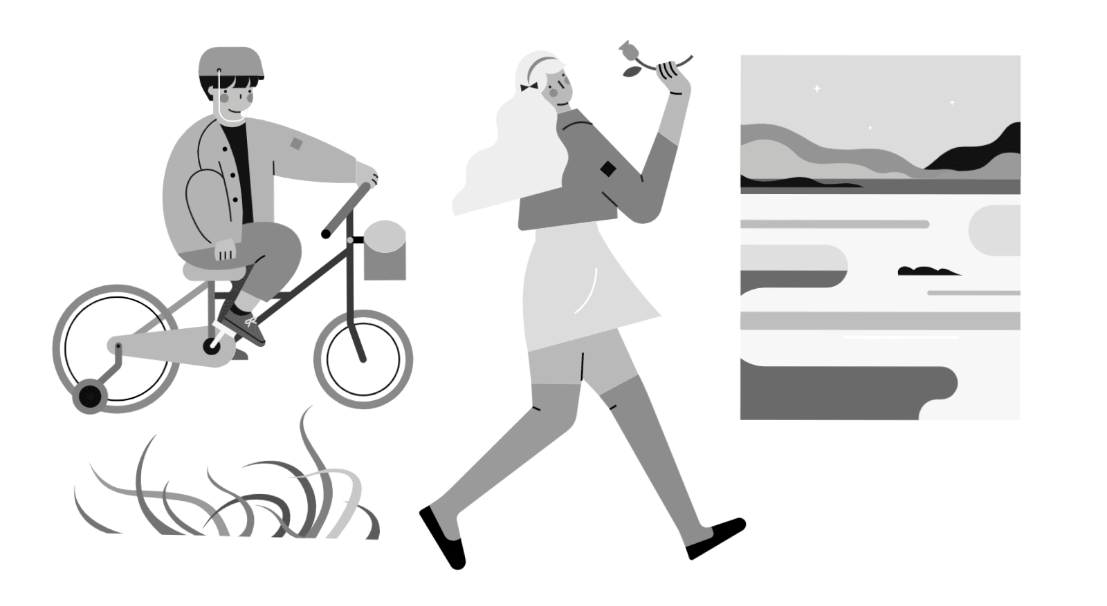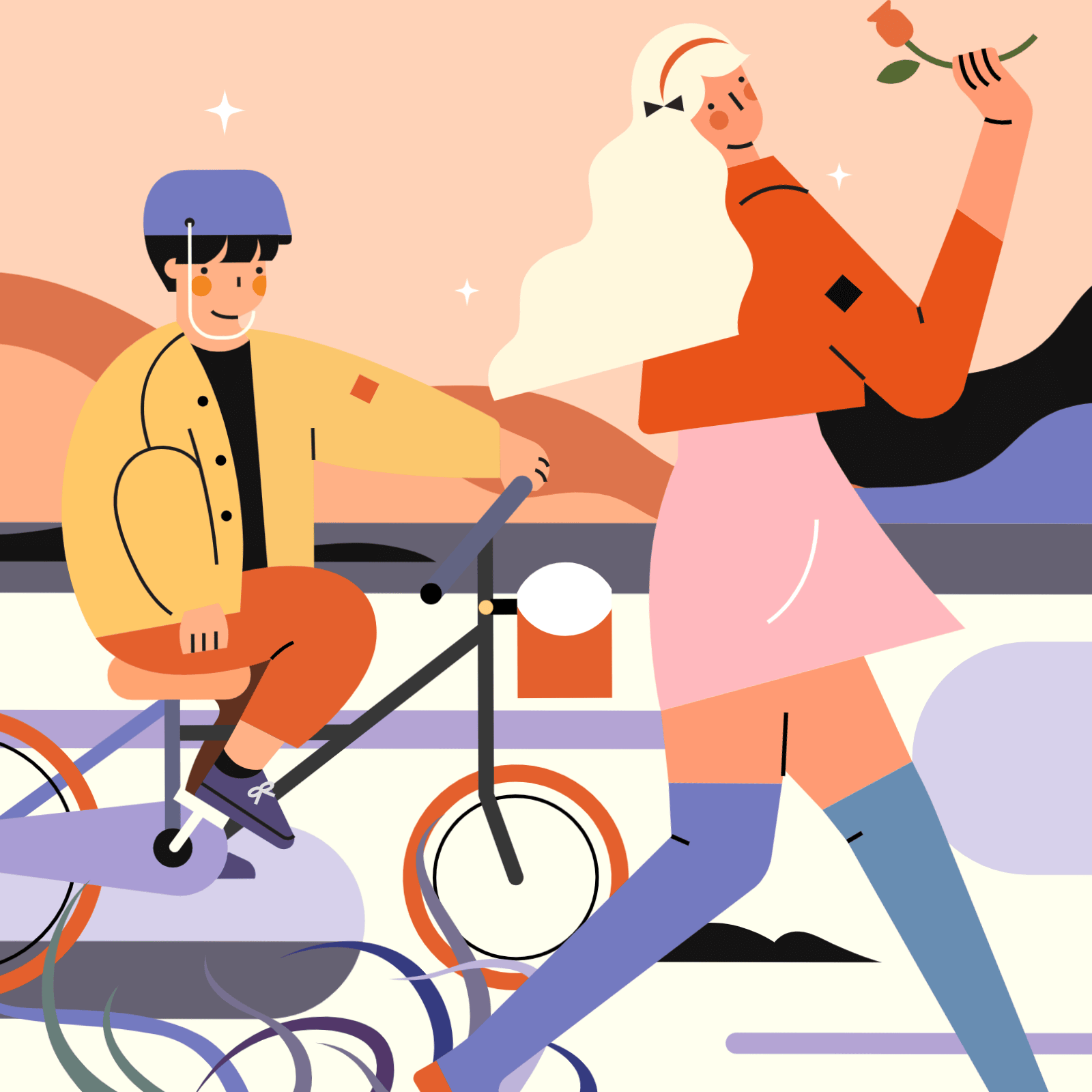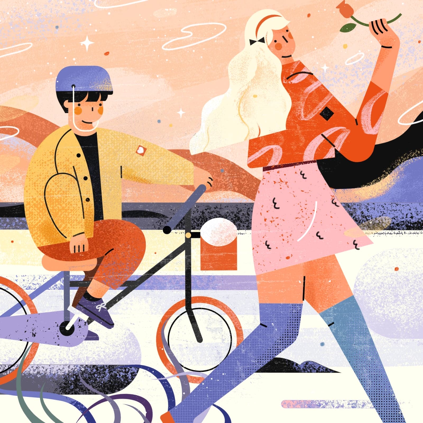 最后一段时间,我突然想到了,还是给这个单车车筐里放点花朵和其他小装饰,插画真是一件永远也不可能完成的作品啊~