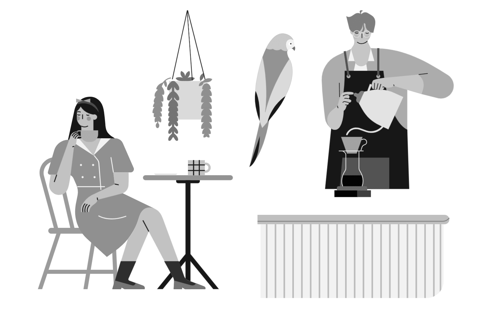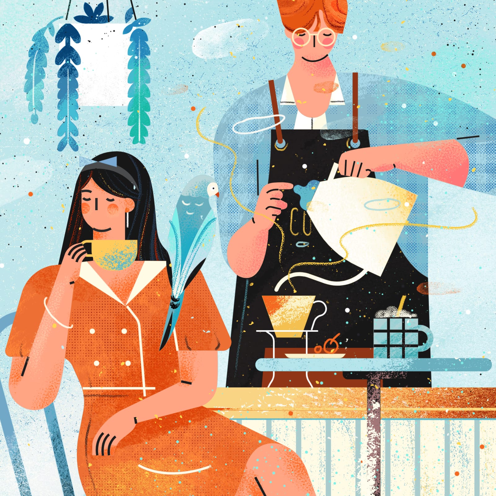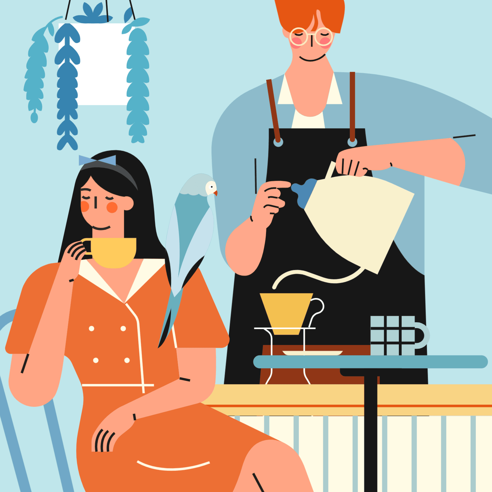 使用元素:人物、家居、陈设、动物 | 配色风格:鲜亮橘蓝