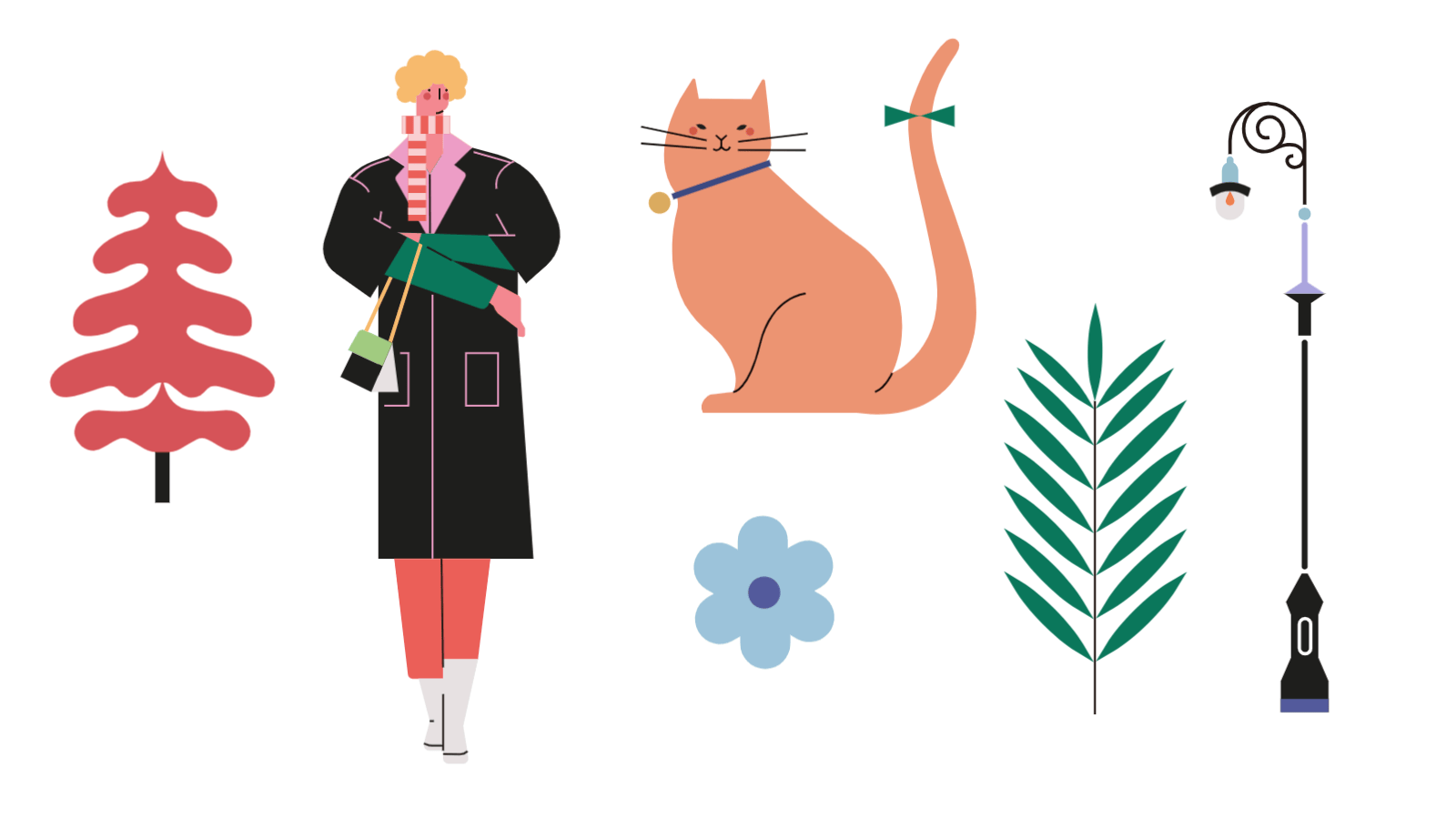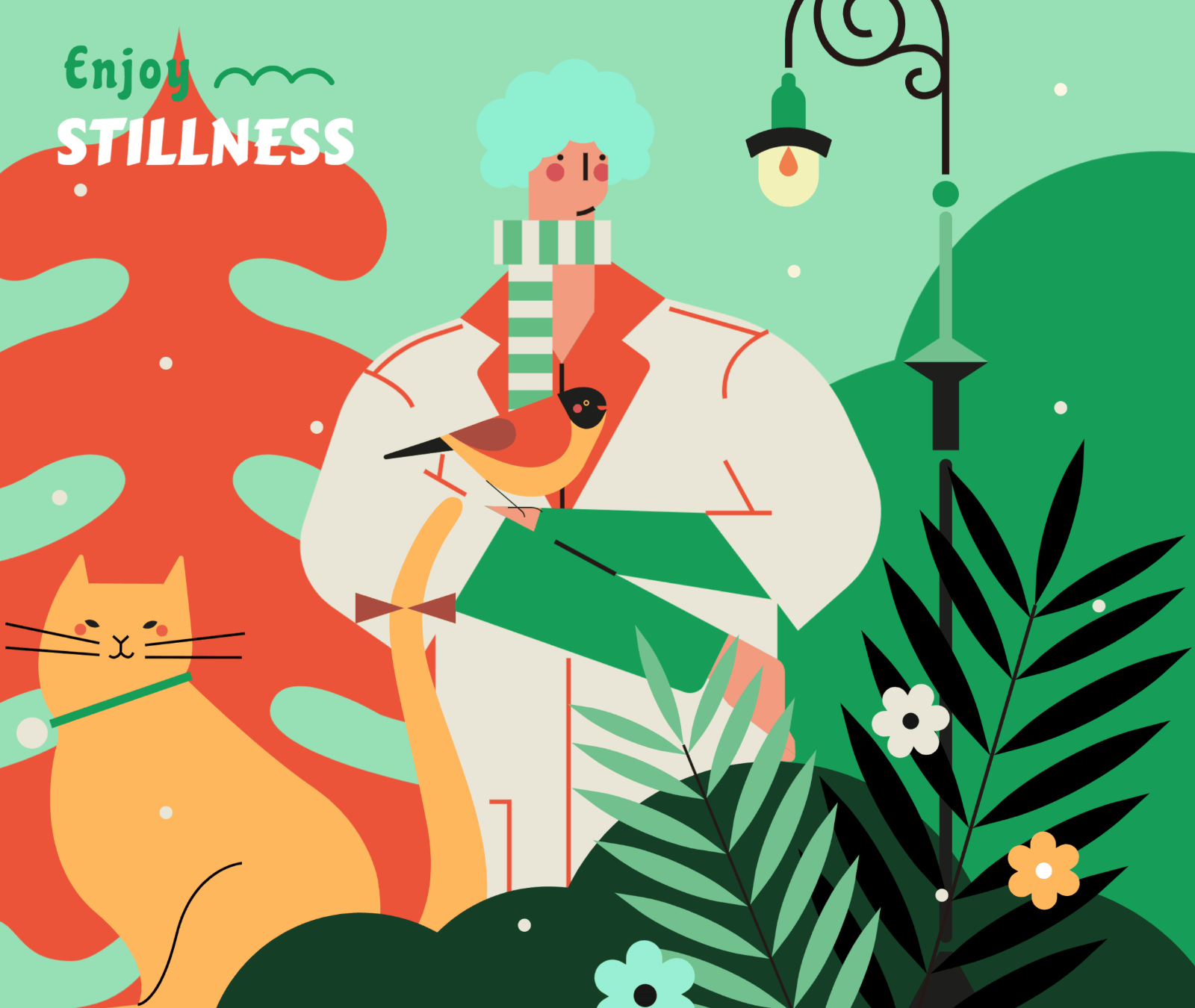 使用元素:人物、动物、植物、建筑 | 配色风格:冷暖混色