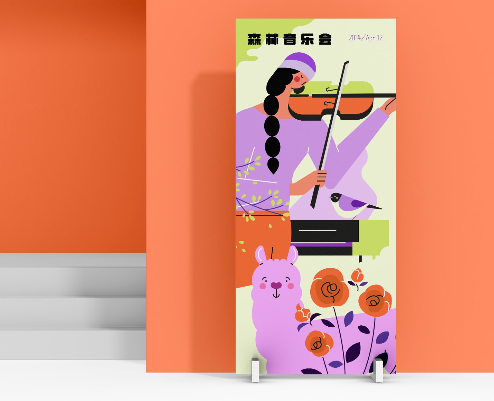 使用元素:人物、动物、音乐、植物 | 配色风格:鲜明紫绿