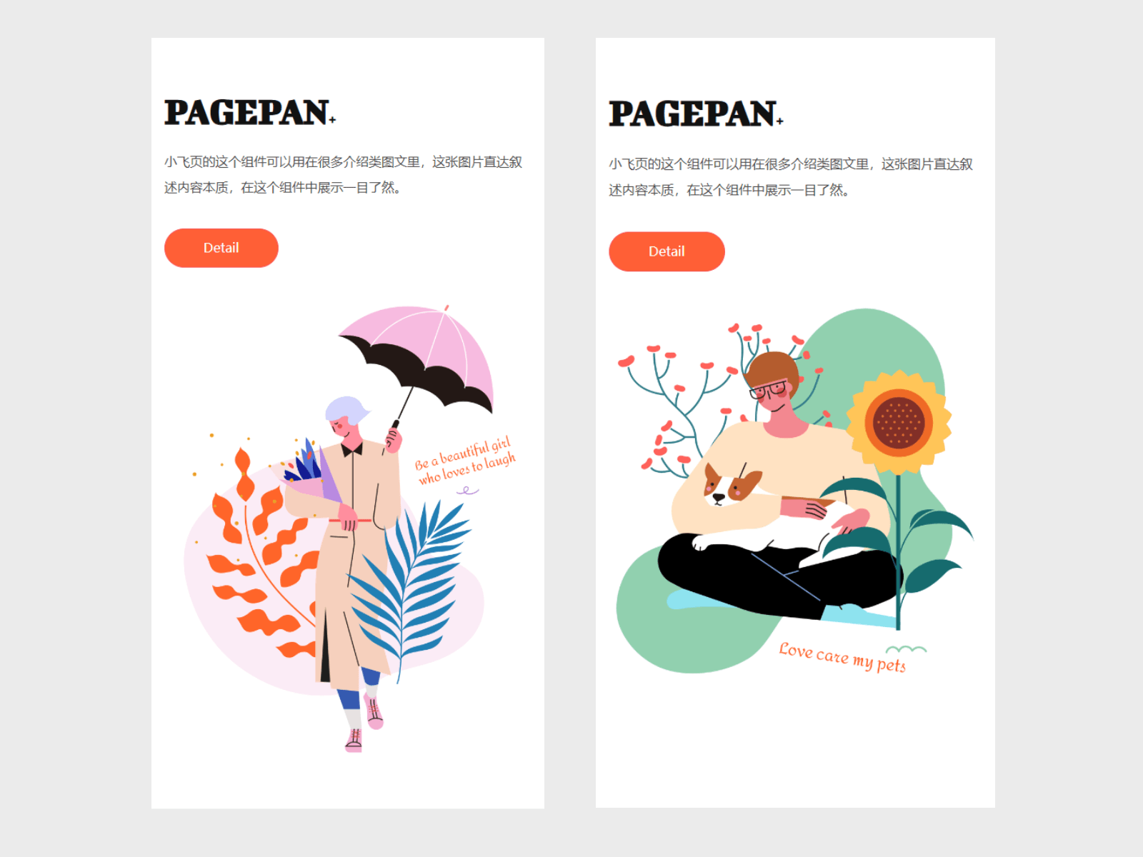 给小飞页内容组件配图的时候,用的是简洁清新的表达。这是在手机端展示的效果。
