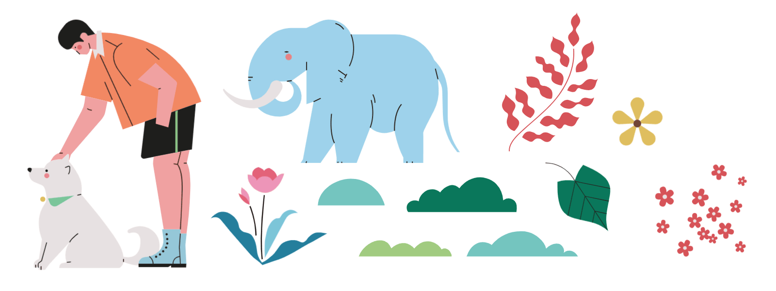 使用元素:人物、动物、植物、形状、氛围 | 配色风格:天真粉绿
