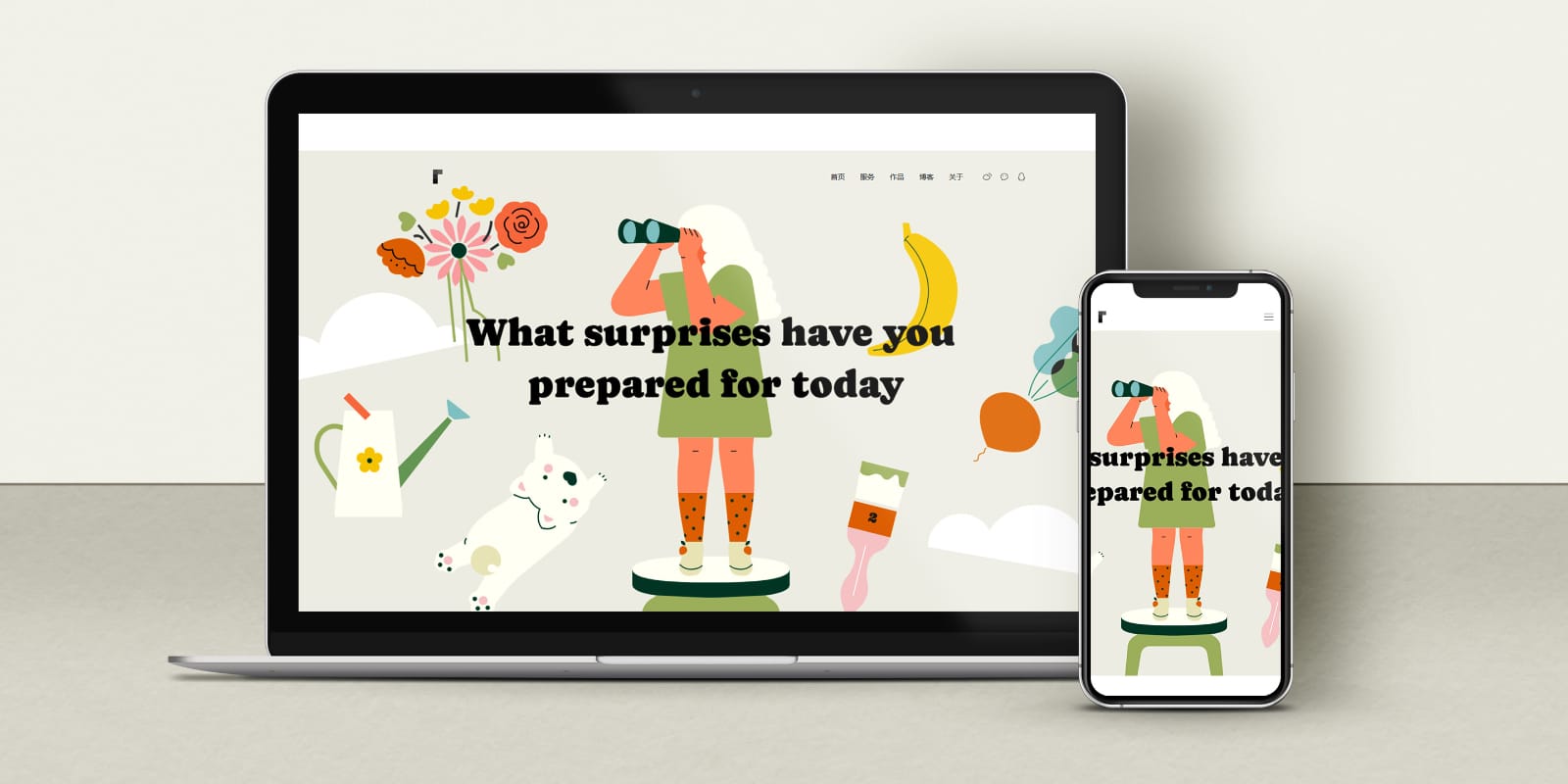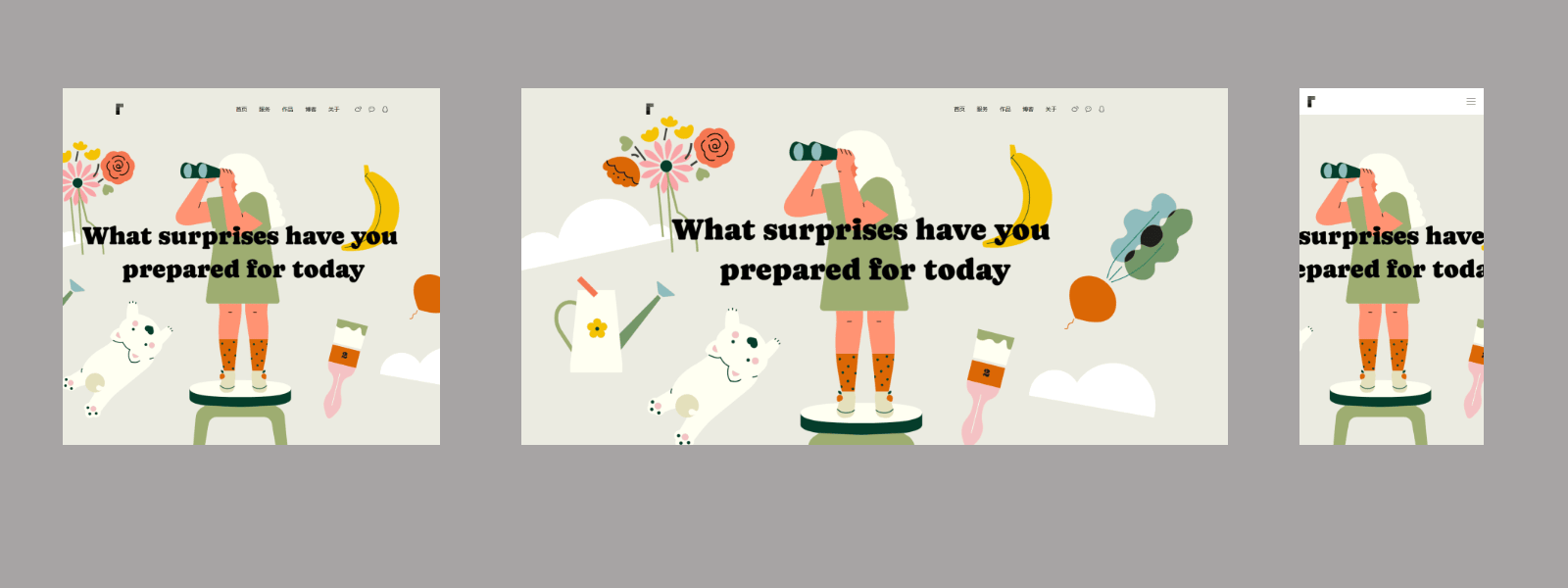 为小飞页的封面组件配图,利用了整幅插画作为网页的背景图,下图是在不同屏幕尺寸下的展示效果
