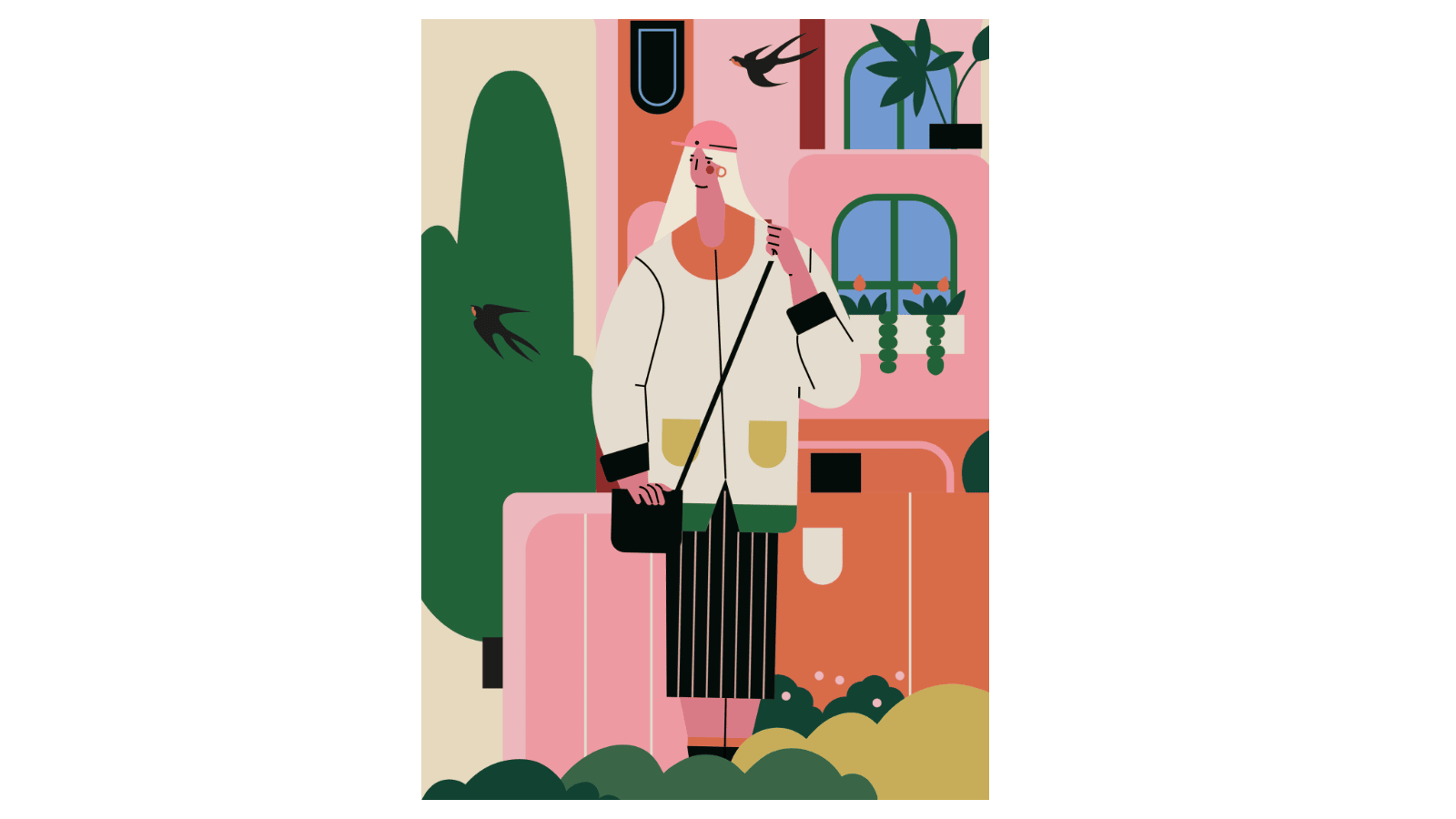 使用元素:人物、建筑、植物、动物 | 配色风格:粉油彩