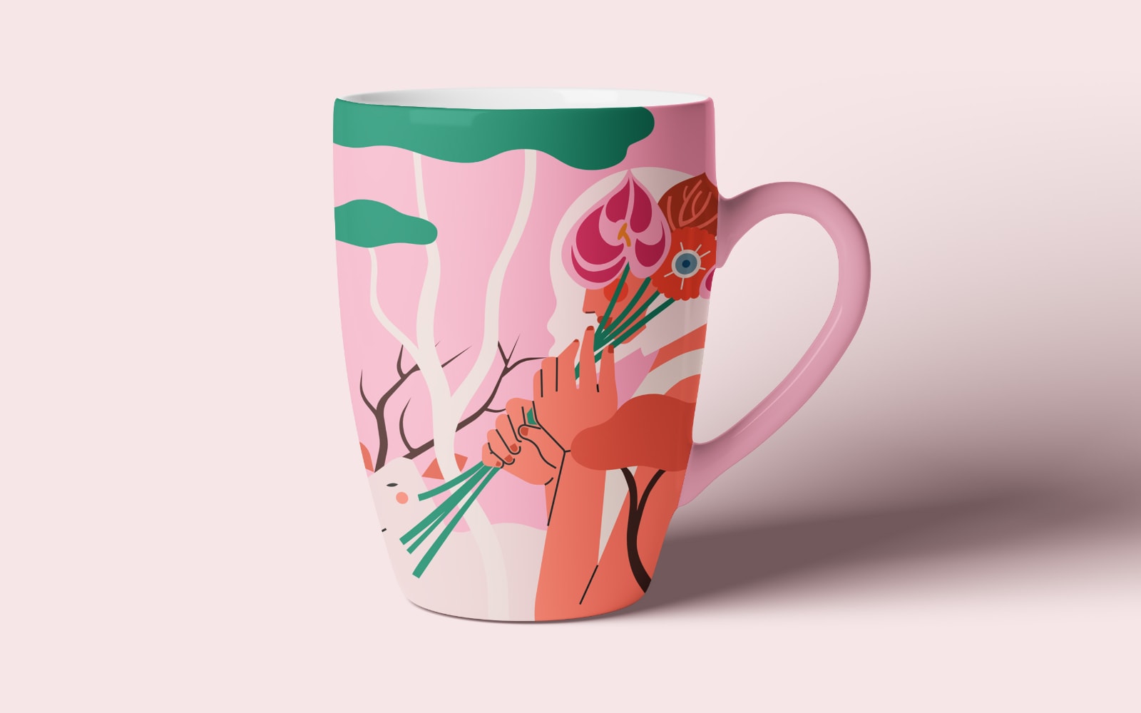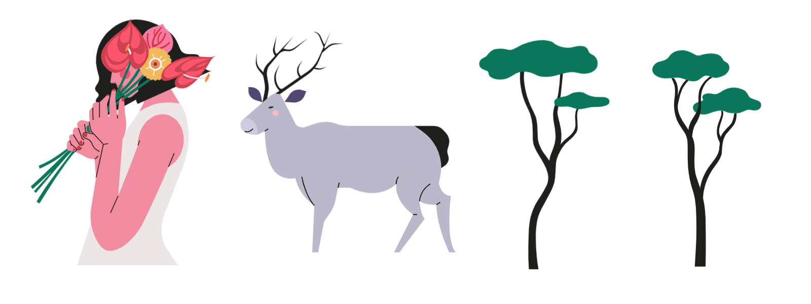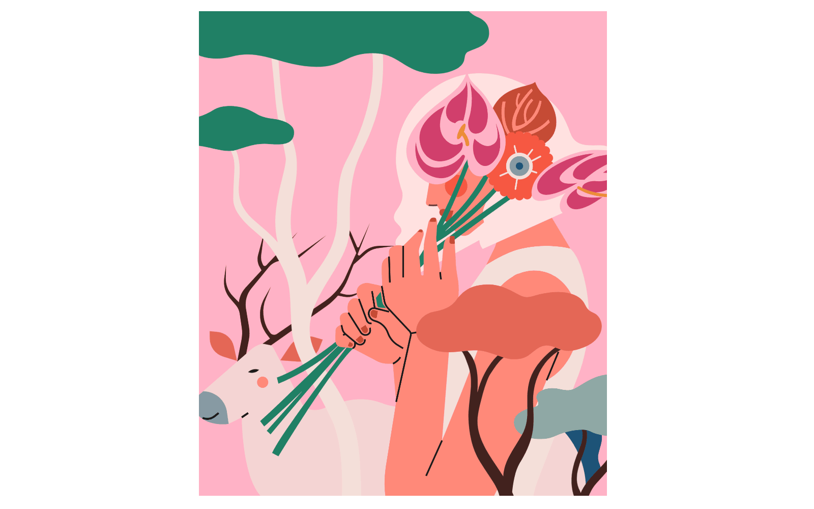 使用元素:肖像、植物、动物 | 配色风格:甜粉橘绿