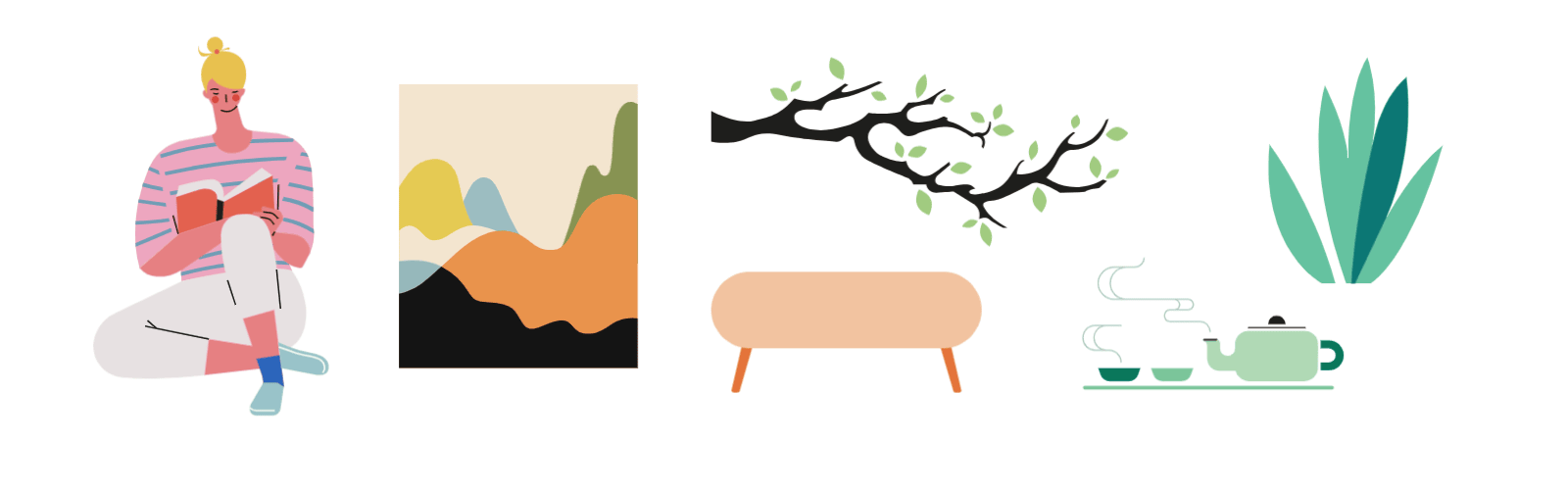 使用元素:人物、背景图形、植物、餐饮、家居 | 配色风格:质朴古雅
