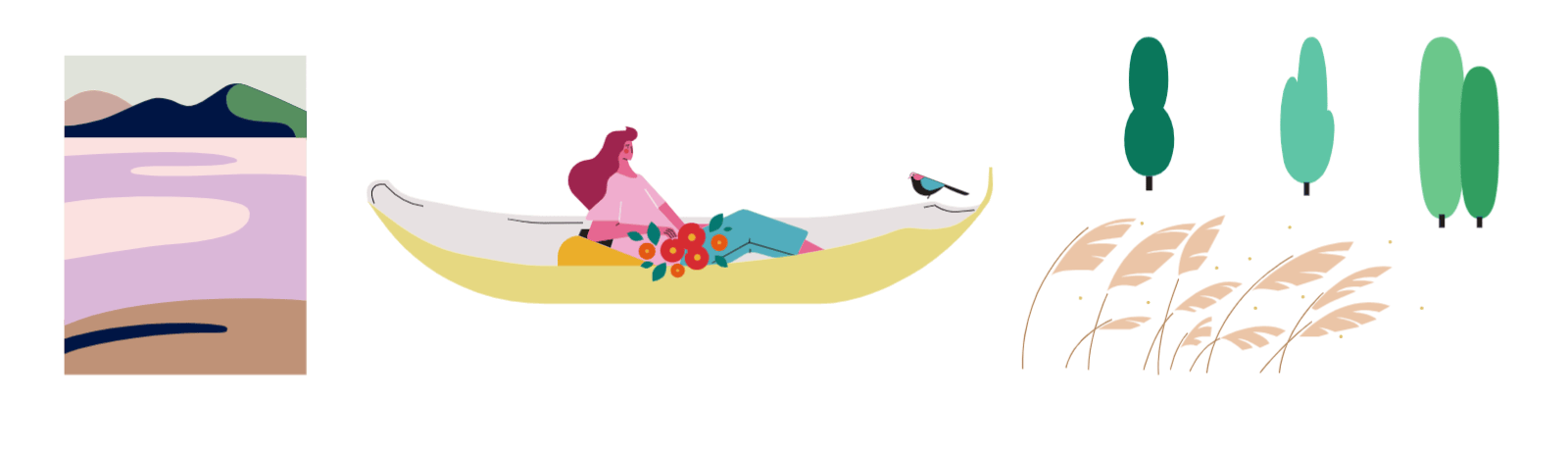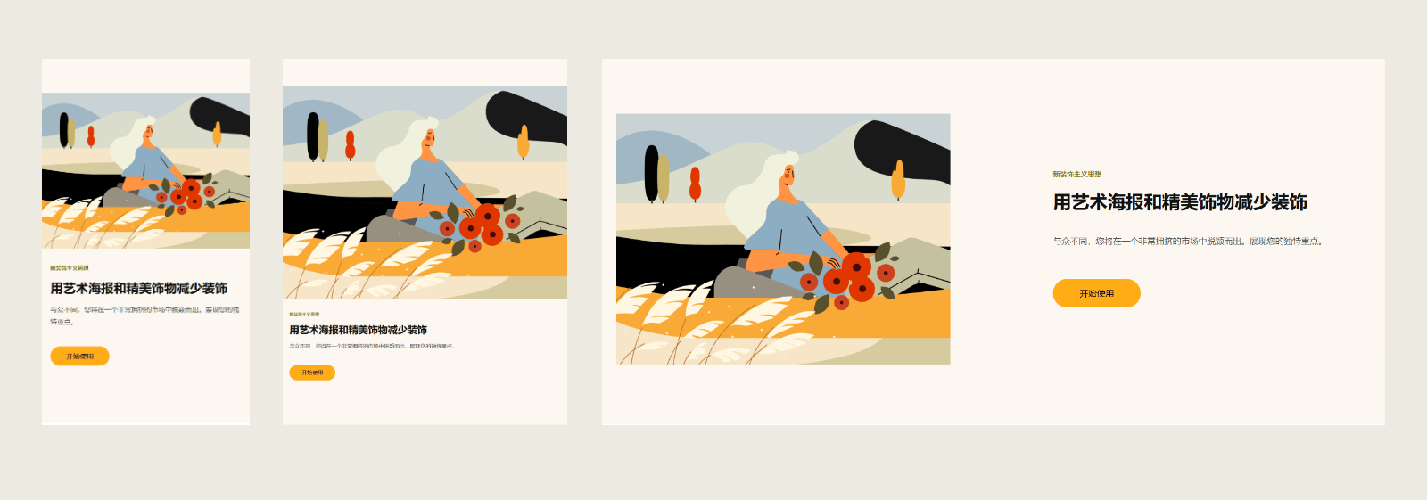 在小飞页的【内容】组件配图里,这类插画作为妥妥的配图角色,安排在文字和按钮的旁边。下面是不同尺寸屏幕下的组件展示效果。