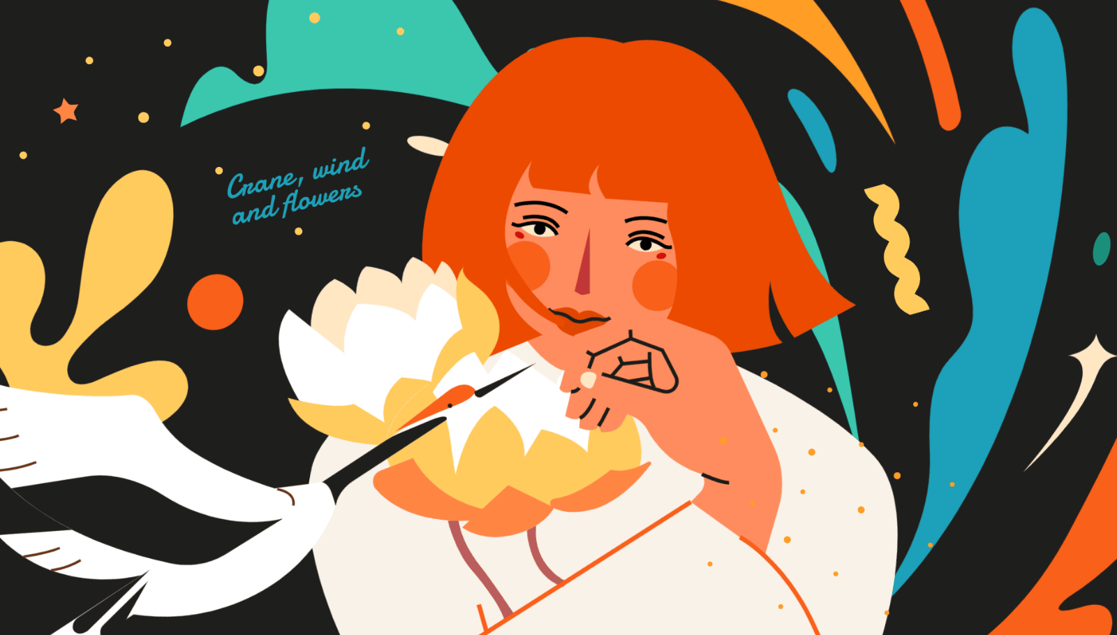 鹤、风与花 ② 使用元素:肖像、动物、形状、背景图形、氛围 | 配色风格:氛围奶黄 开始编辑 这幅作品是对原有的鹤、风与花①的修改,整体的构图思路并没有改变,在原图基础上我重新减少了元素的使用,重点突出了人物肖像鹤鹤的互动,背景换了更具凝聚力的圆环状背景图形构造出梦幻与动态,并且使用了氛围奶黄来重新配色。 主要使用元素 完成作品 将氛围奶黄作为这幅插画的配色,先来一个暗夜版。 这是白光版。 鼠标垫插画设计 考虑到鼠标垫会容易弄脏,所以使用暗夜版会更合适。