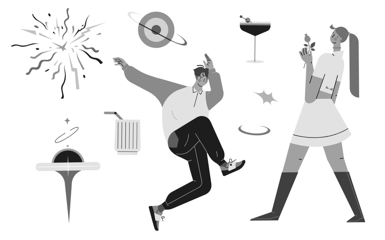 热烈 ② 使用元素:人物、餐饮、氛围、太空、形状 | 配色风格:氛围奶黄 开始编辑 这是对热烈①这幅作品的调整,整体构图并没有改变,人物角色和背景氛围都基本保持了原状,其中我换掉了狗狗,增加了太空的元素来进一步强化这幅画的新奇之感。 主要使用元素 完成作品 我使用了氛围奶黄作为这幅插画的配色。 海报插画设计